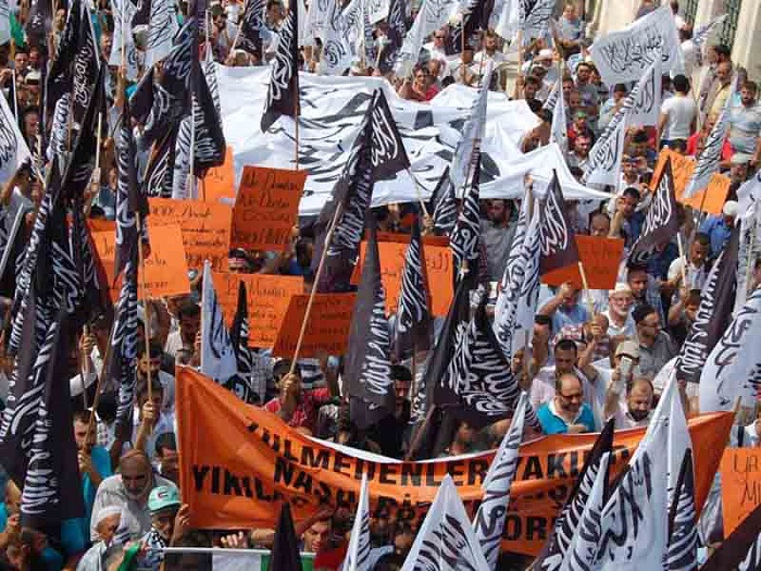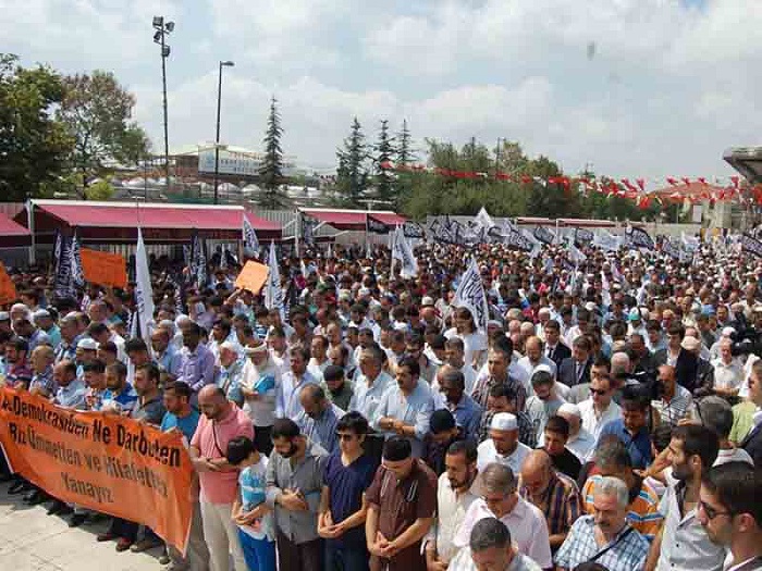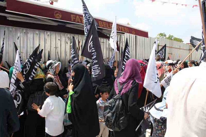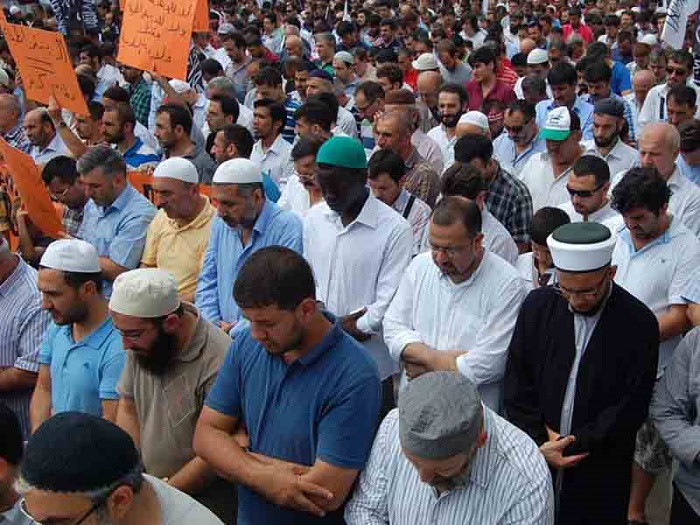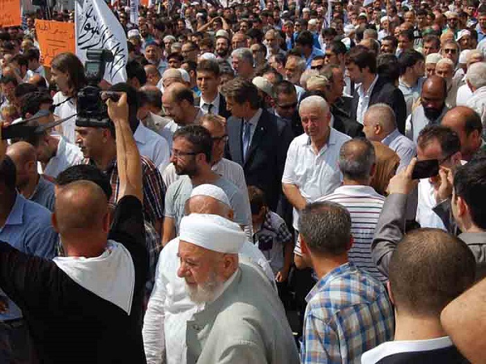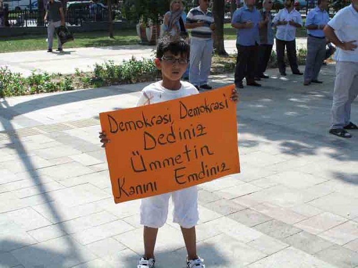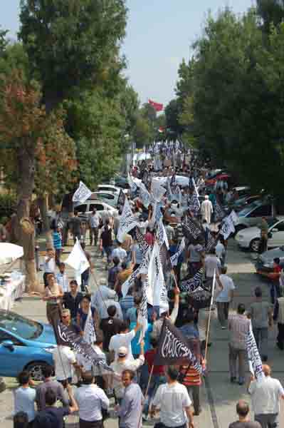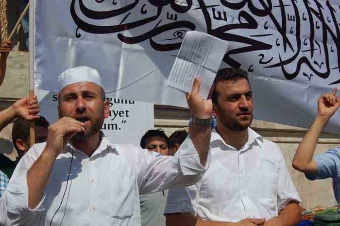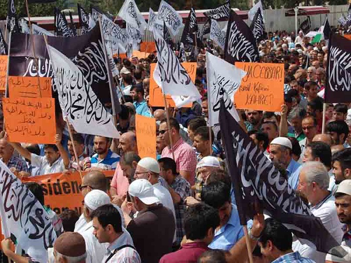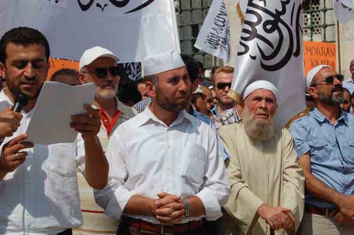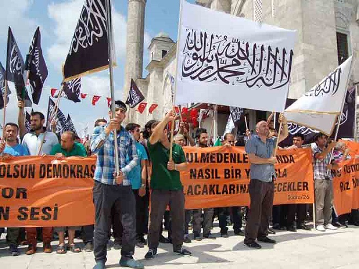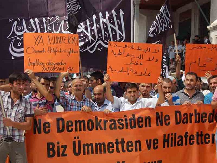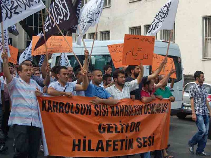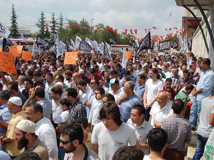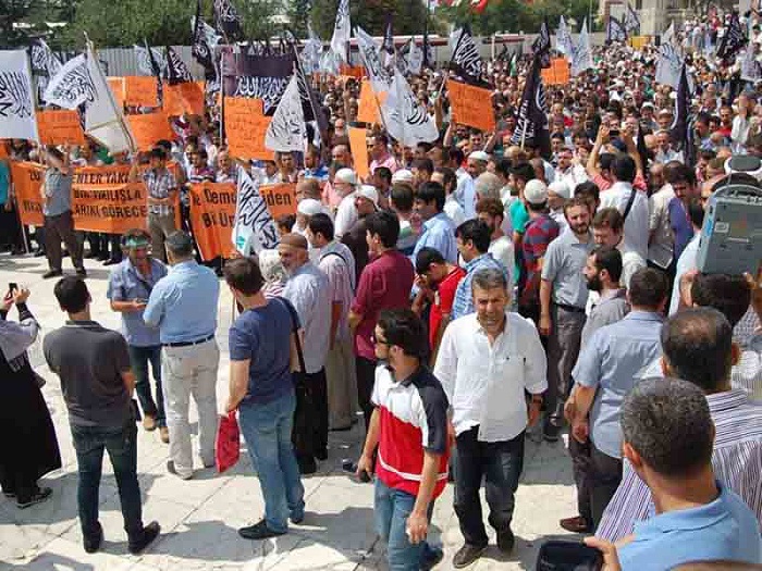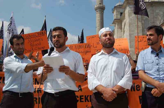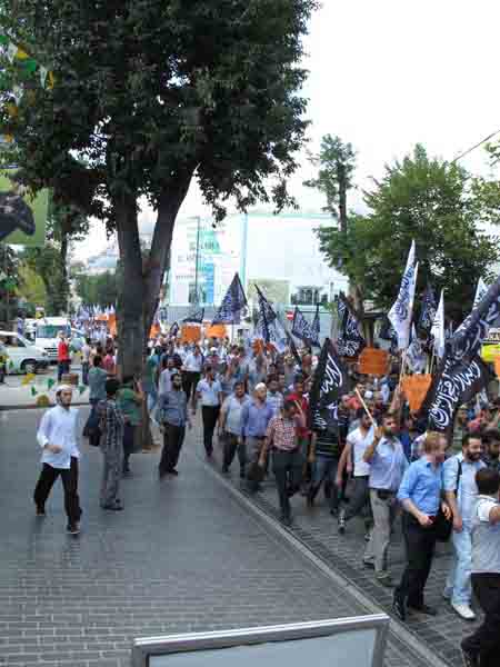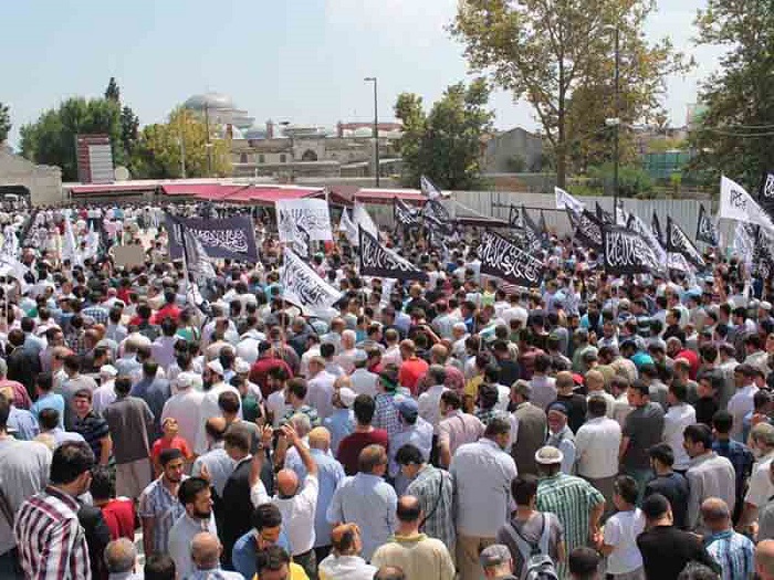 Hizb ut Tahrir/ Wilayah Turkey members and supporters organized a demonstration in Fatih Mosque in Istanbul attended by thousands and covered by the media guaranteed its delivery of press releases to condemn the brutal massacres committed in Egypt towards displaced Muslims calling for the rule of Allah's Shariah throughout the land.