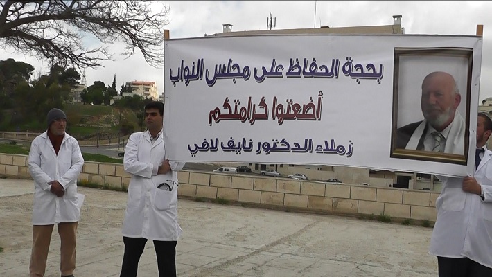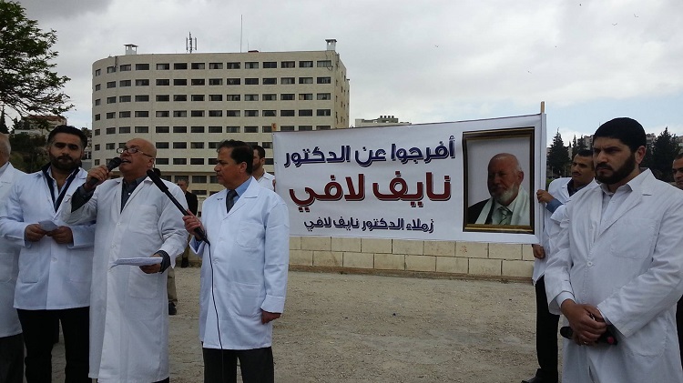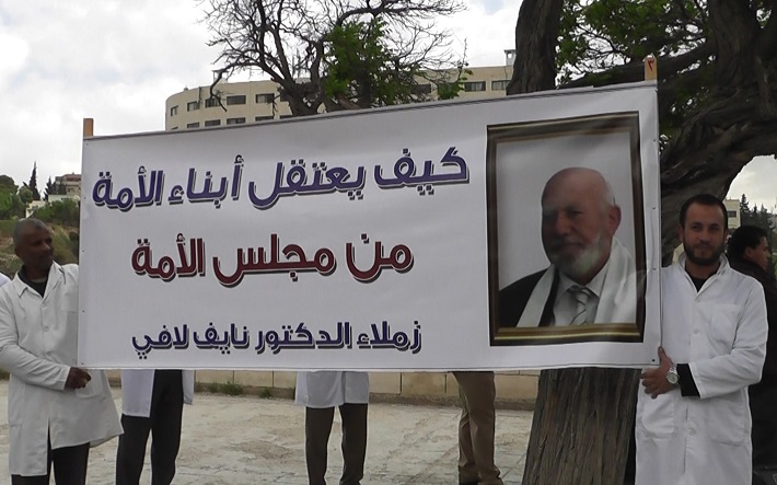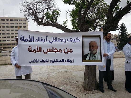 The colleagues of Doctor Nayef Lafi organized a stand before the House of Representatives to condemn the arrest of Doctor Nayef Lafi from within the House of Representatives where some conspire in political actions against what was commanded by Allah swt.