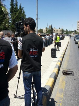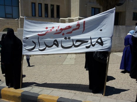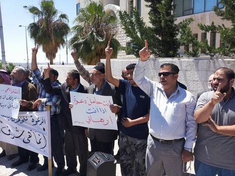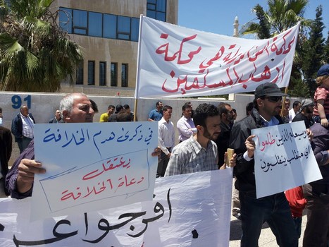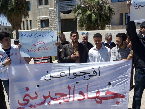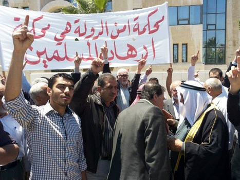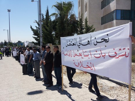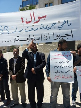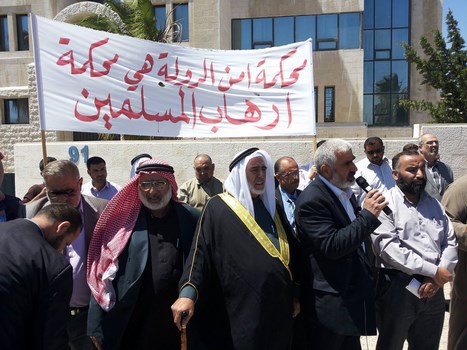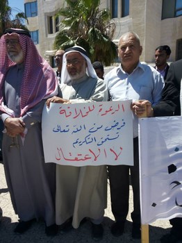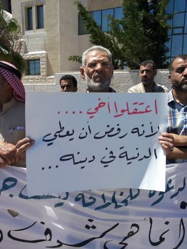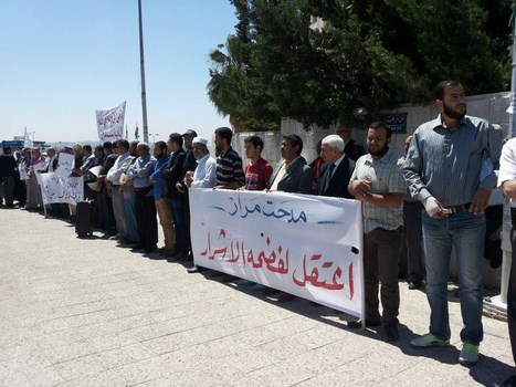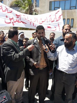 Hizb ut Tahrir/ Wilayah Jordan and the families of the two arrested brothers, Medhat Marar and Jihad Aljabrini, held a stand this morning in front of the Prime Minister Headquarters to demand their immediate release. It gathered hundreds of family members and friends of the detainees. Their voices soared with Takbeers and chants that expose and bare the regime and its position against the dawah carriers. Mr. Taiseer Murar gave a speech presenting the stance of the families and that their sons give them great honor to be a part of those who work to re-establish the Khilafah "Caliphate". He also insisted on the demand to release them immediately. Mr. Ahmad Abu Qadoom also spoke in which he challenged the regime to reveal the reasons for the arrest of the Hizb's members, and that the regime is involved in a war against the call for the establishment of the Islamic State, and also exposed their complicity with the plots of the West. The son of the detainee Medhat Marar also delivered a speech in which he stated that his father had not sold the country and did not betray the nation, but was arrested for being a guardian of Islam.