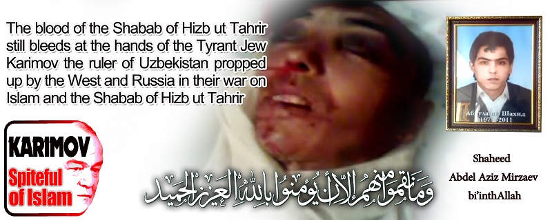 The Islamic Ummah who already suffers from misery does not need a spiteful, criminal, communist Jew, the enemy of Islam and the Muslims, Karimov. It has reached the extent that the Dunya wails and moans from its agony, and the Muslims curse their massacres and raise their complaint to the Lord of the Heavens, may Allah destroy you Karimov, Putin and Obama. The calamities of the Muslims in Uzbekistan from killing, expulsion, torture and assassination in which the criminal Karimov would not have been able to do all this without the cover and support from Putin the tyrant, and the head of Kufr and oppression Obama, who surpasses all his predecessors of the American presidents in indulging in besieging the Muslims and humiliating and plotting against them.
