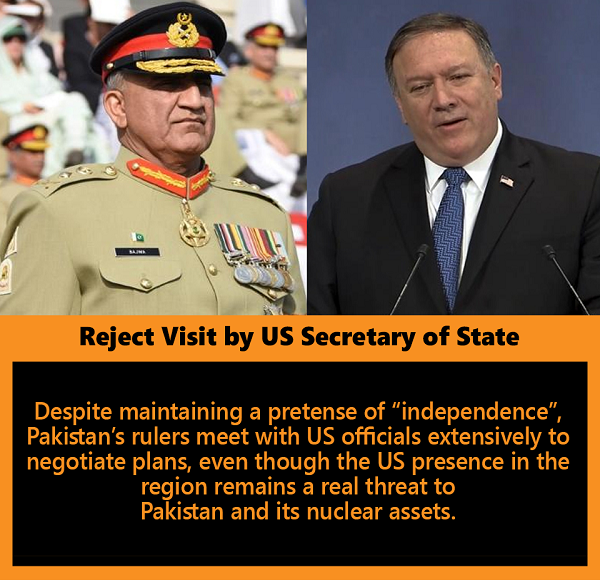 Hizb ut Tahrir / Wilayah Pakistan firmly rejects the welcoming of US Secretary of State, Mike Pompeo, and the US Chairman of the Joint Chiefs of Staff Committee, General Joseph F. Dunford, by the new rulers of Pakistan on 5 September 2018. The visit by the US military and political leadership is to secure the US presence in Afghanistan, by insisting Pakistan employs both force and persuasion to bring the Afghan Taliban to negotiations.