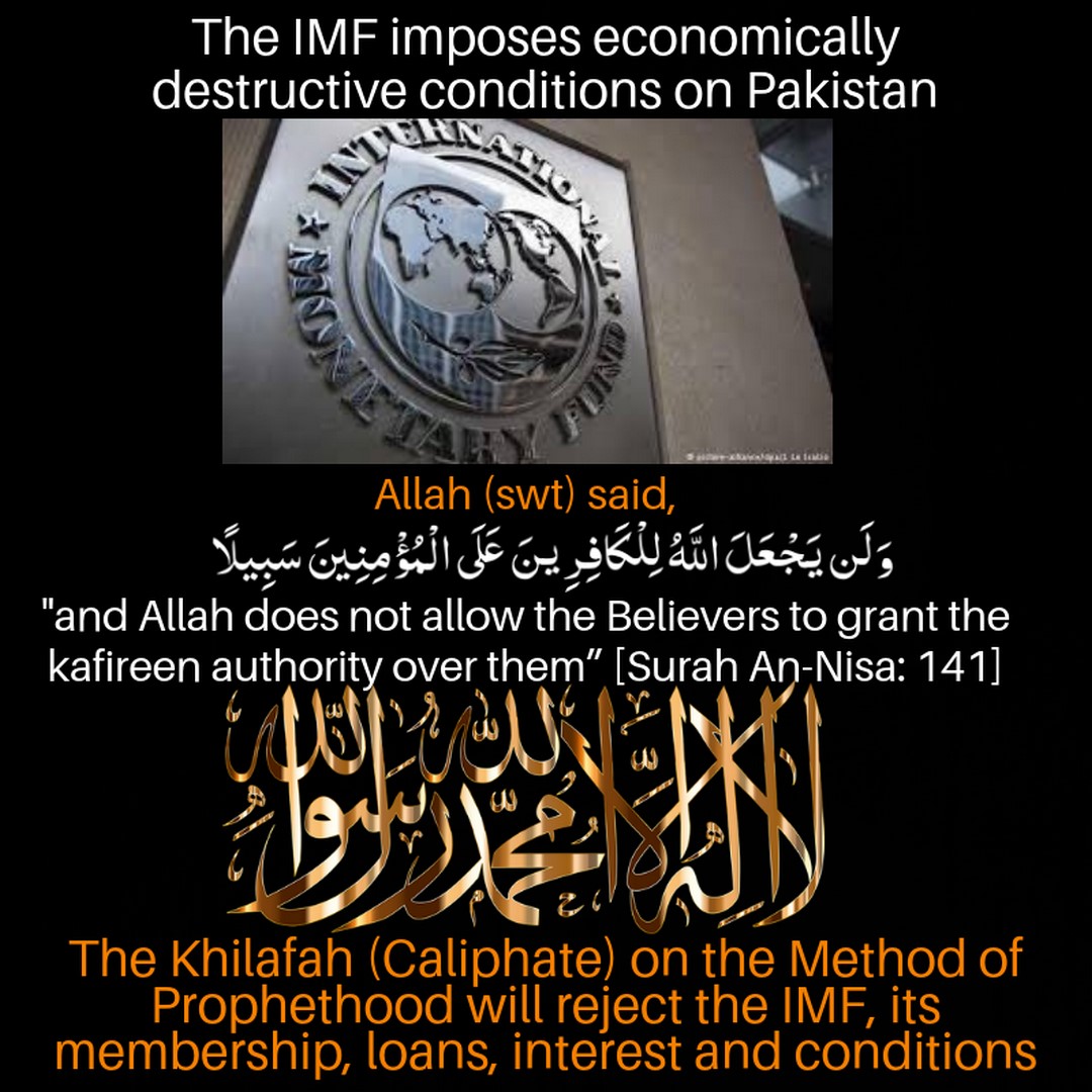 O Muslims of Pakistan! There is no prosperity in sin and no blessings in angering Allah (swt) and violating that which He (swt) has commanded. The so-called Naya (New) Pakistan is the same as all that has come before of submission before the Kuffar and obedience to their falsehood. Raise your voices with the Shabab of Hizb ut Tahrir / Wilayah Pakistan in their rejection of the IMF, its loans, its interest and demands. And work now with them for the re-establishment of the Khilafah (Caliphate) on the Method of Prophethood, which will implement Islam without compromise, to ensure that its citizens benefit of the immense wealth of these lands, in the good pleasure of Allah (swt).