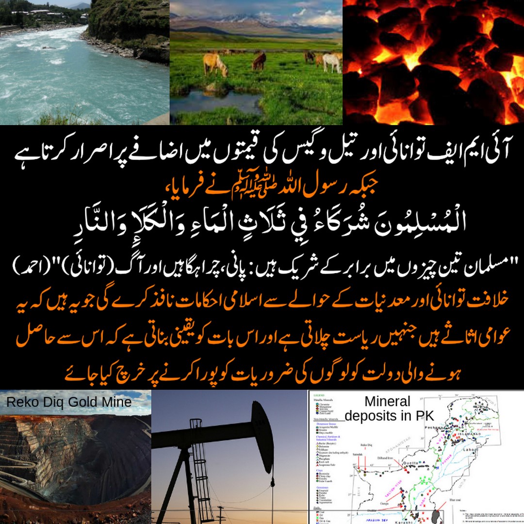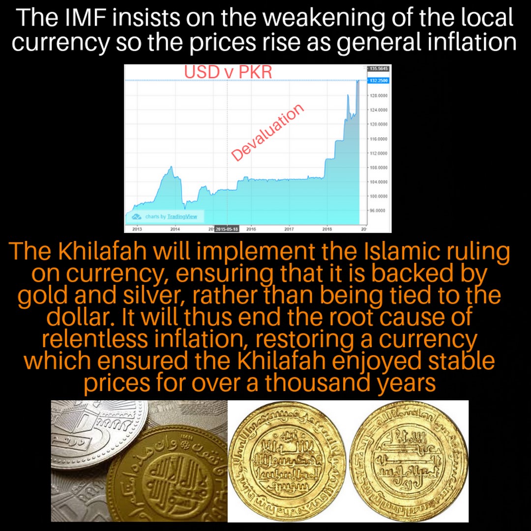 «الْمُسْلِمُونَ شُرَکَاءُ فِي ثَلاثٍ الْمَاءِ وَالْكَلَأِ وَالنَّارِ» “Muslims are partners in three things: water, pastures and fire (energy)” [Abu Dawood.] And the IMF demands that the Rupee is linked to the dollar and devalued, which leads to the relentless rise of prices. Yet, the Bajwa-Imran regime is committed to the Rupee dollarization and devaluation, even though RasulAllah (saaw) mandated that the currency of the Islamic State in Madinah is backed by gold and silver, which ensured that prices were stable for centuries, during the time of ruling by all that Allah (swt) has revealed.
