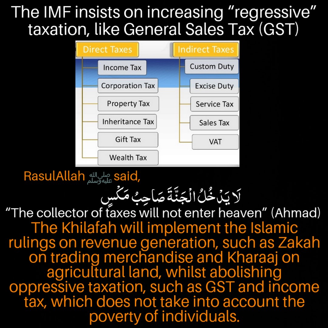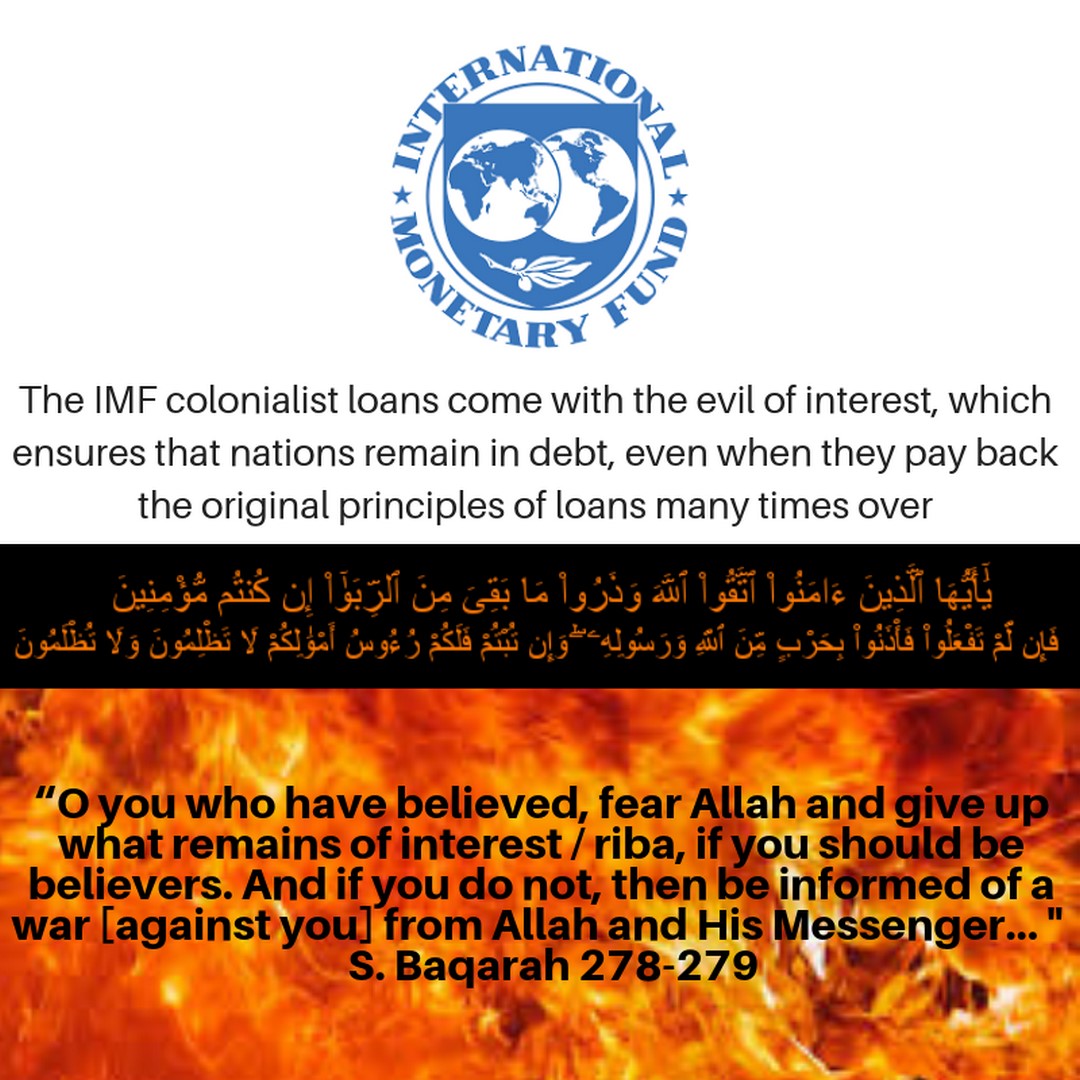 The IMF demands interest upon its loans which means that countries pay back the original principal many times over due to the curse of interest. The regime is accepting this, even though Allah (swt) said,