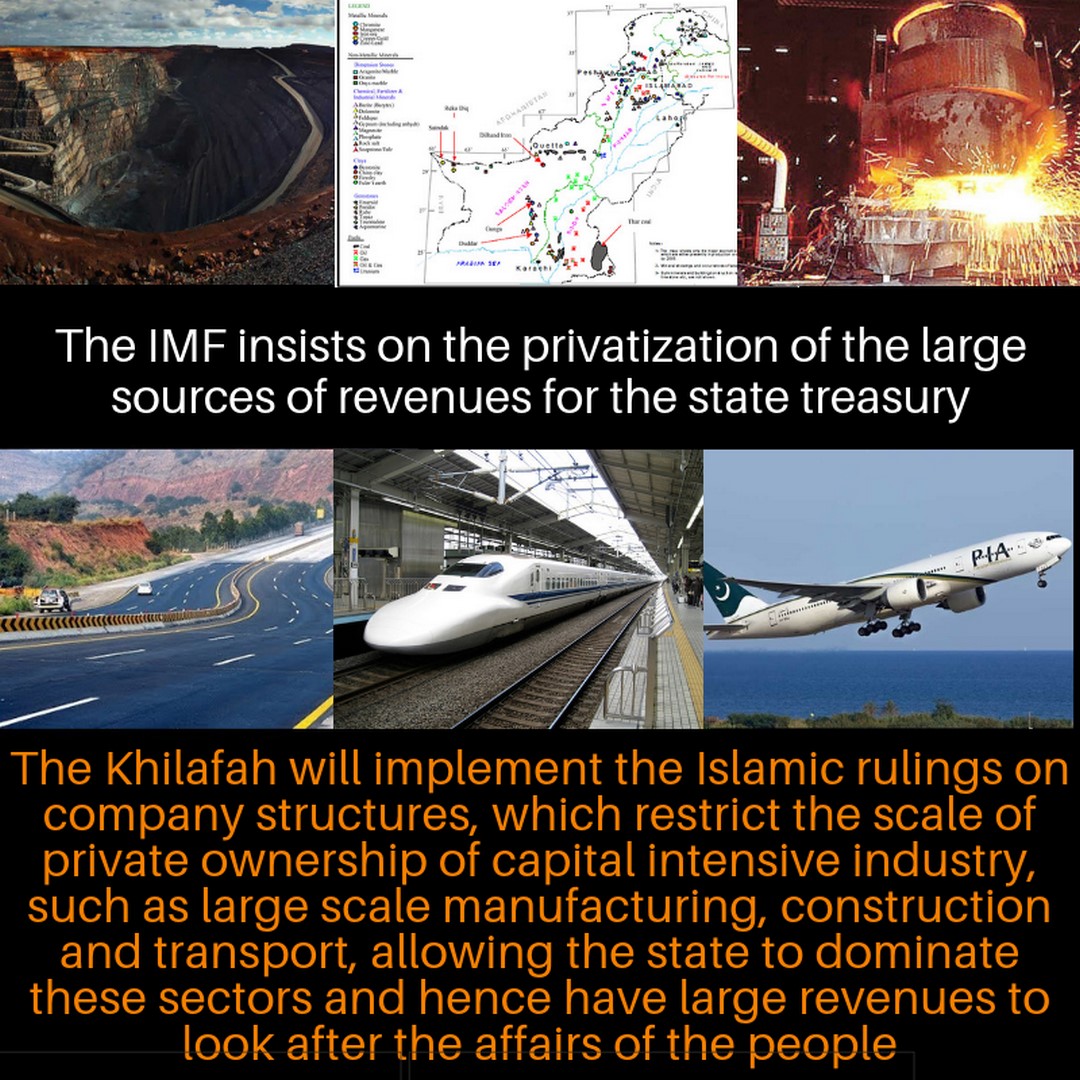 The IMF demands the privatization of that which Islam has mandated as public property, such as oil, gas and minerals. The regime is committed to privatization, so that the public is deprived of is right, whilst a small elite benefit, even though RasulAllah (saaw) said,