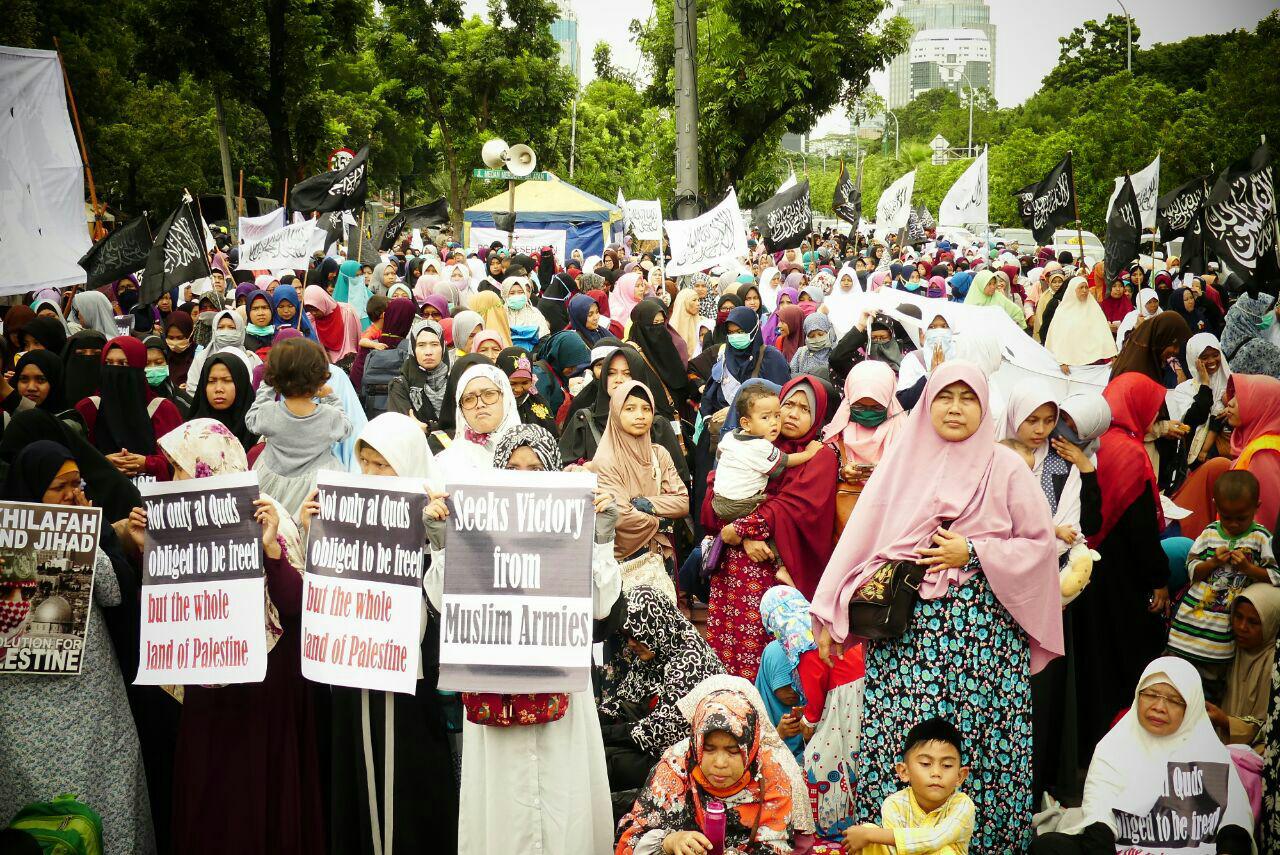 Hizb ut Tahrir Wilaya Indonesien organisierte eine Serie von Kundgebungen und Demonstrationen vor der amerikanischen Botschaft in Jakarta wie auch in verschiedene indonesische Städte, in Unterstützung für Al-Quds (Jerusalem), die gesegnete Al-Aqsa Moschee als auch das restliche Heilige Land (Palästina), nach bekannt werden, dass Amerika, Feind des Islam und der Muslime, Al-Quds als Hauptstadt vom verbrecherischen jüdischen Gebilde anerkannt hat. Die Demonstrationen richteten sich an erster Linie an die muslimischen Armeen, sich unverzüglich in Gang zu setzten, um Al-Quds als auch das gesamte Heilige Land von diesem jüdischen Gebilde zu befreien.