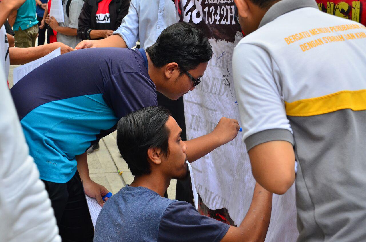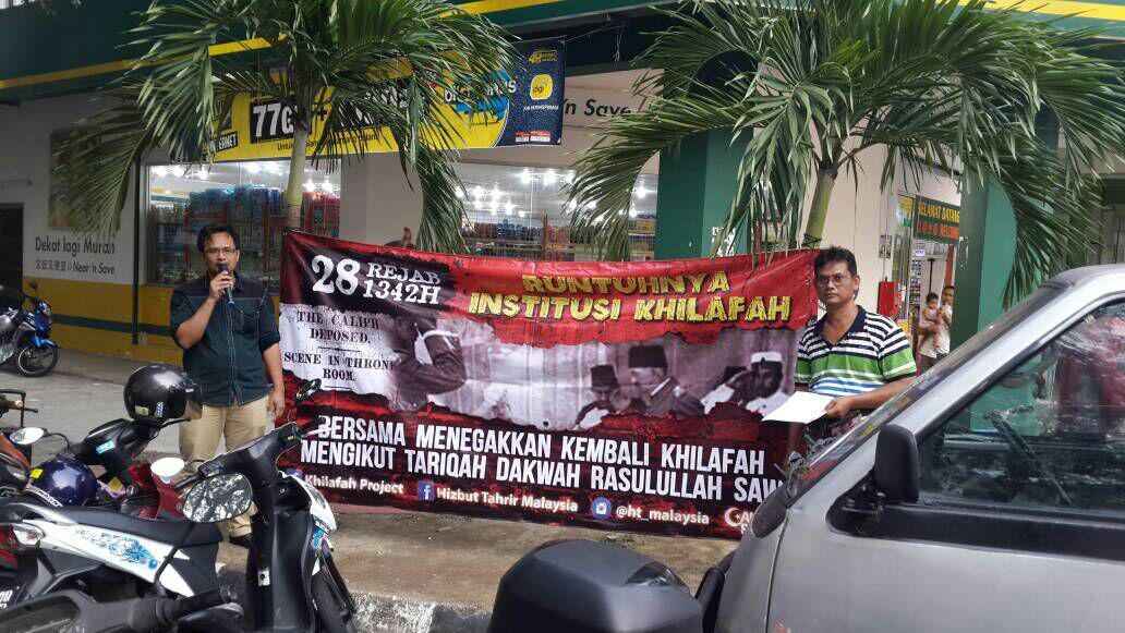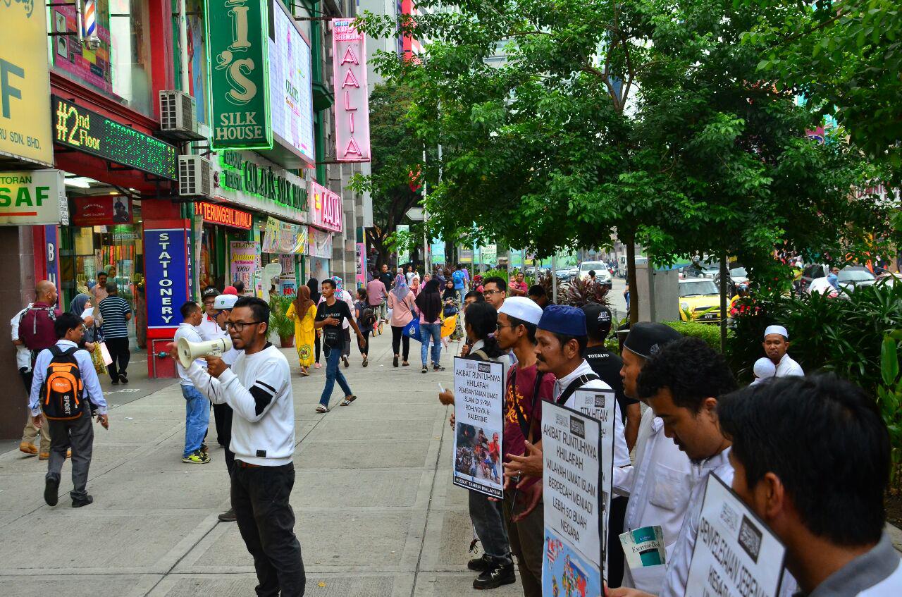 Kundgebung am Freizeitpark (Taman Tasik Titiwangsa, Kuala Lumpur). Diese Kundgebung wurde nach dem Nachmittagsgebet wo sich viele Leute aufhielten, da der Park im Herzen Kuala Lumpurs liegt. Vier Mitglieder hielten ihre Reden mit Hilfe von Lautsprechern ab. Die Ansprachen waren über die Probleme die die Umma seit dem Zerfall des Kalifats ausgesetzt ist, und über die Intrigen die die Ungläubigen schmieden um die Wiedererrichtung des Kalifats zu verhindern. Gleichzeitig wurden die Muslime über die Pflicht zur Wiedererrichtung des Kalifats informiert. Der letzte Sprecher trug ein Gedicht vor, wie sehr die Umma das Kalifat braucht. Die Kundgebung dauerte über eineinhalb Stunden und konnte auf Facebook live verfolgt werden.