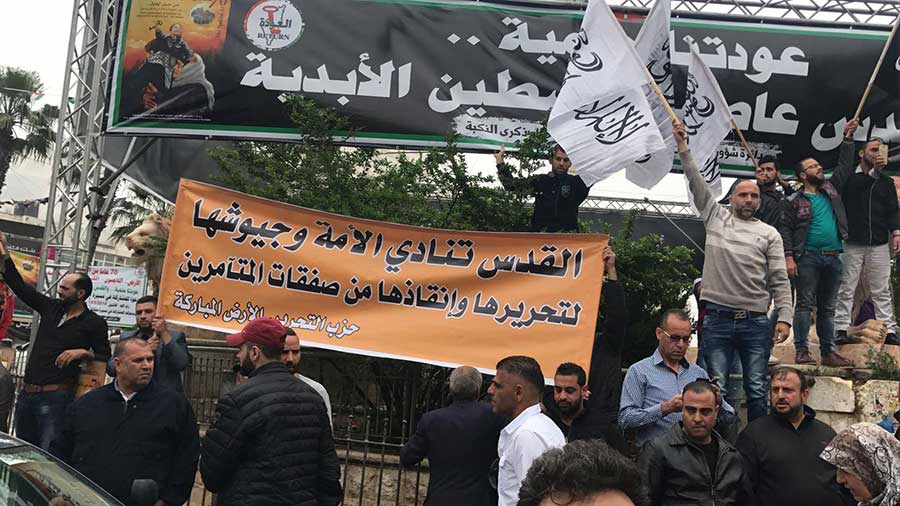 Das Heilige Land: Hizb ut Tahrir versammelt sich in Ramallah appellierend zur Unterstützung von Al-Quds (Jerusalem) und zur Befreiung von Palästina und stellte sich gegen die Vereinbarungen und Verschwörungen ihnen gegenüber
