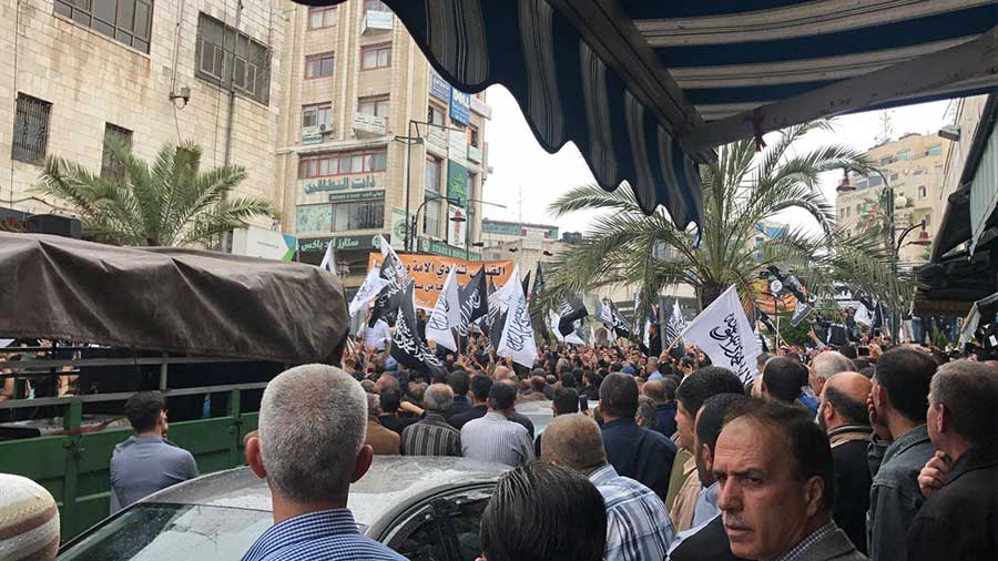 Tausende nahmen an einer Kundgebung teil, die Hizb ut Tahrir im gesegneten Land (Palästina) am Samstag, dem 12. Mai 2018 n.Chr., veranstaltete. Die Massenkundgebung fand in der Innenstadt von Ramallah zur Unterstützung von Al Quds statt: "Al Quds fordert die Armeen zur Befreiung von Palästina und die Rettung vor Verschwörungen".
