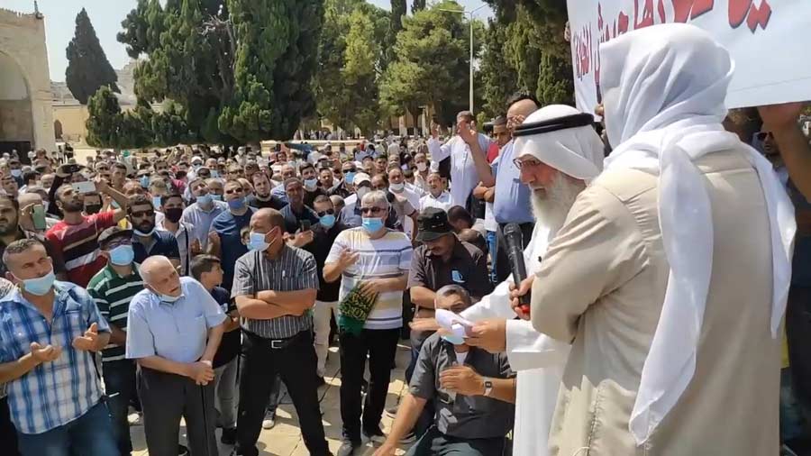 Hizb ut Tahrir organisierte im gesegneten Land (Palästina) ein Protest an der Al-Aqsa Moschee, wo es eine durchschlagende Rede hielt, um die Normalisierung der VAE und Bahrains mit der usurpierenden jüdischen Einheit anzuprangern. Es begann nach dem Jumaa-Gebet mit dem Titel „Die Normalisierung ist ein Verrat und Palästina wird von der Armee des Kalifats befreit.“