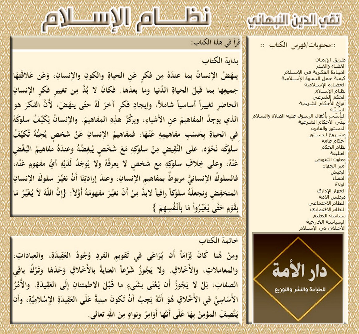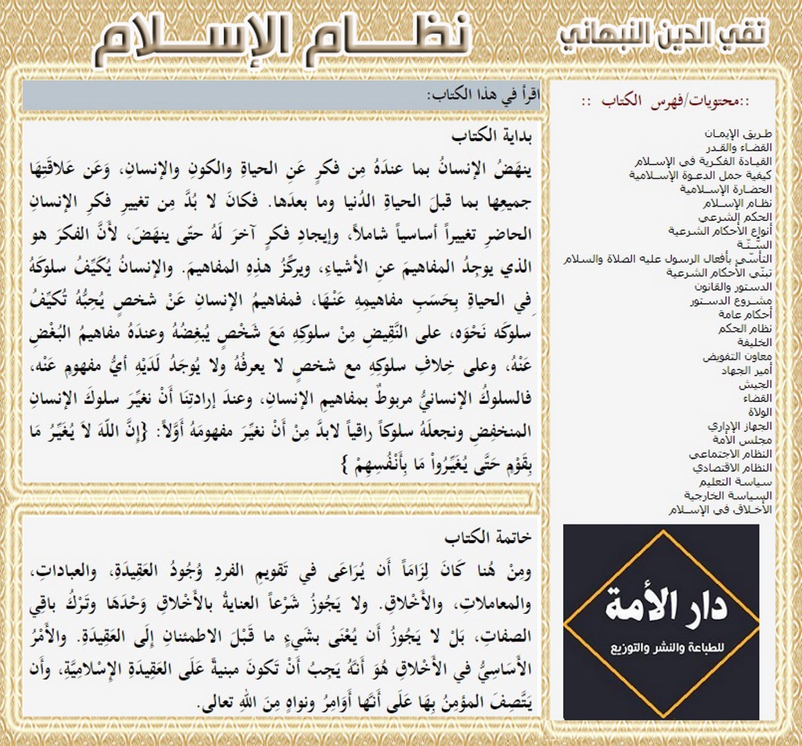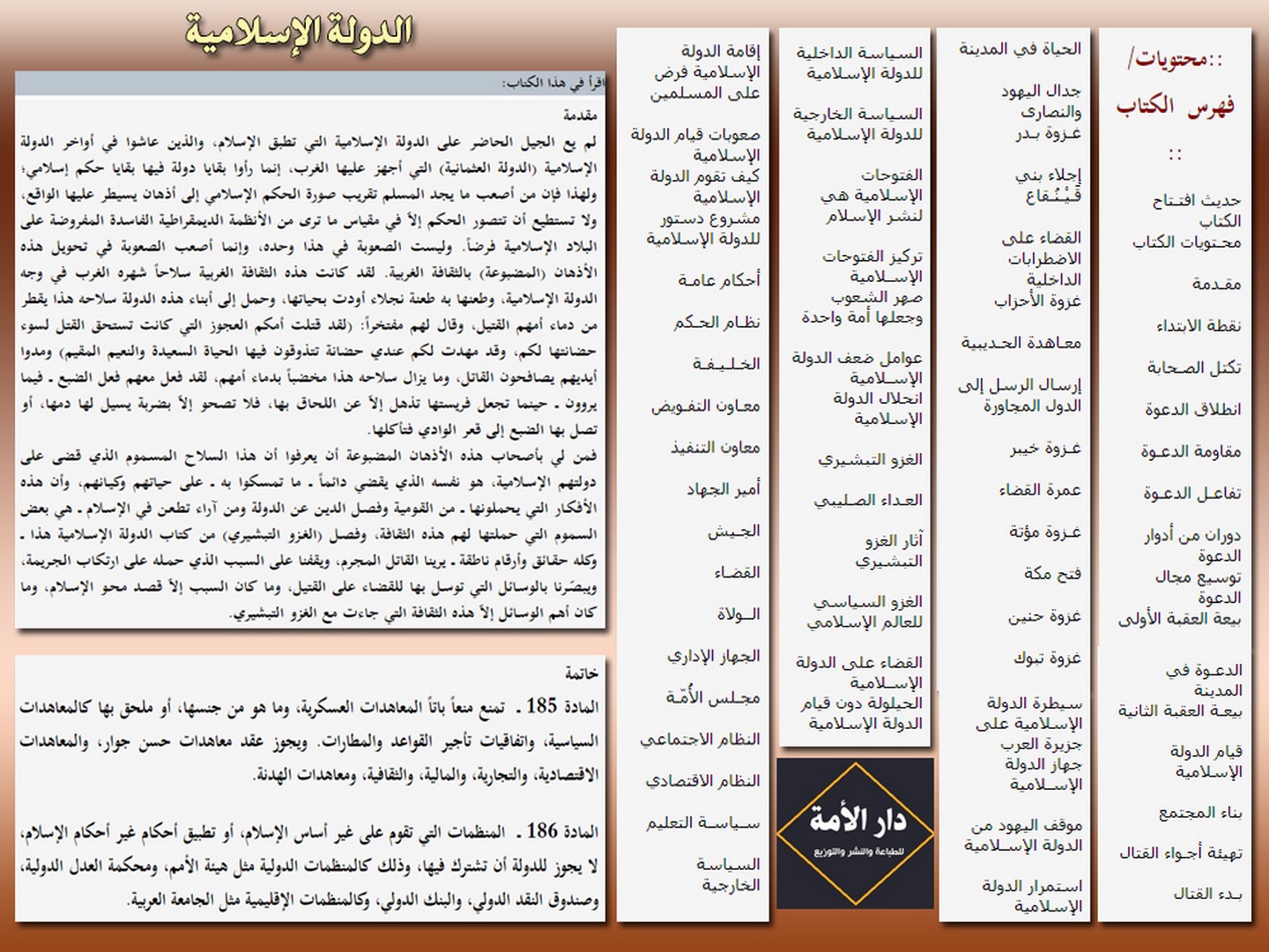 Der Verlag دار الأمة „Dar alUmma“ für das Drucken, Publizieren und Distribution wird am Ausstellungsstand 165 an der internationalen Buchmesse des arabischen Buchs in Istanbul teilnehmen, die vom 1. bis 9. September 2018 n.Chr. in Yeni Kabi mit Blick auf die Küste des Marmarameeres stattfindet. Seine Teilnahme zeichnet sich mit einer Vielfalt anausgezeichneten islamischen Büchern,die meisten von Hizb ut Tahrir.