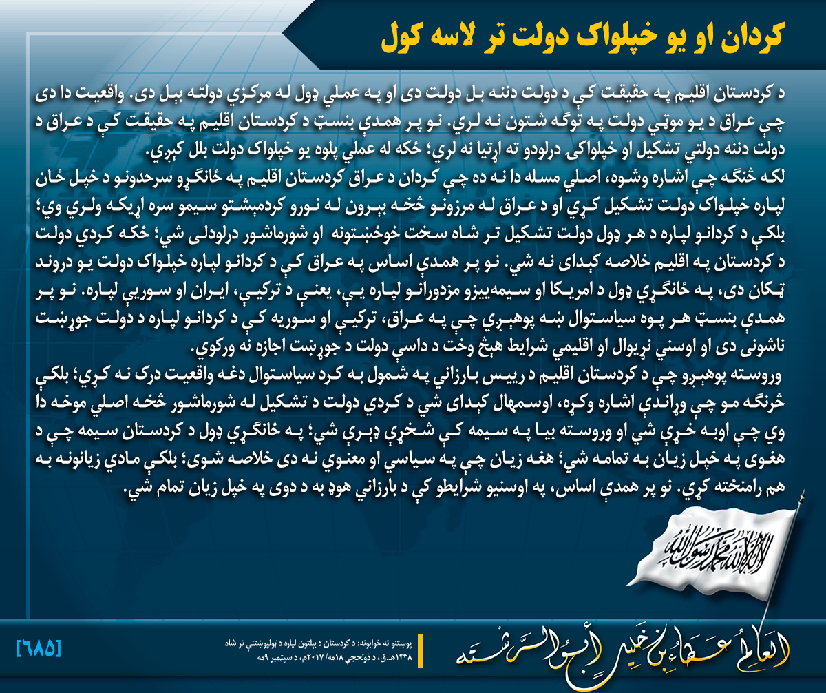 1 محرم 1360 مطابق یکشنبه, 19 نومبر 2017م بسم الله الرحمن الرحيم کردان او یو خپلواک دولت تر لاسه کول Last modified onیکشنبه, 19 نومبر 2017 اړوند مطلبونه: « د انګلیس ماته په خپل وژنتون (قطر) کې! دا دعوت خاص د الله سبحانه وتعالی د رضا لپاره دی! » نظر ورکړئ نوم * ایمیل * برېښناییزه پته دو کلمه زیر را وارد نمایید! پیغام * ستاسو پیغام... back to top