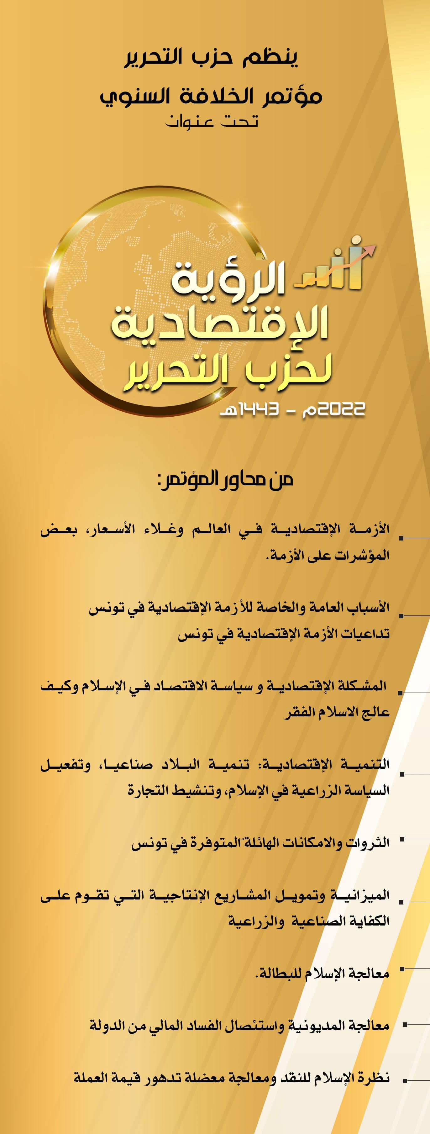 Ulimwengu wa leo ungali unaishi juu ya athari za mgogoro mpya wa kiuchumi. Bali, ungali unaendelea kuungua kutokana na masuluhisho maovu na kuwa mbali kutokana na maudhui makubwa ya uchumi, haswa chini ya utawala wa mfumo wa kirasilimali wa kiulimwengu na benki zake na mifuko yake ya fedha ya kimataifa zinazodhibiti njia za dola, serikali na watu, na kwamba migogoro inayotokana na utabikishaji wa urasilimali, pamoja na yale Tunisia inayoyapitia, itaendelea maadamu wanadamu hawatarudi kwenye njia na kutambua njia ya wokovu wake, kwani hawaufikii na kamwe hautafikiwa isipokuwa kwa kutabikishwa Uislamu na mfumo wake adilifu wa kiuchumi na masuluhisho yake halisi ya kiwahyi. Kutokana na haya, ilikuwa ni wazi kwamba matatizo ya umaskini wa watu na kufilisika kwa serikali, kwa hakika, yanaakisi mgogoro wa mfumo ambao haufai tena kuchunga mambo ya watu, na kwamba dola ya kitaifa inayoyumba si dola tena ya uchungaji bali ni dola ya ukusanyaji ushuru inayoendeshwa na wafanyakazi na madalali katika taasisi za riba za kimataifa, na kwa hiyo yeyote anayebeba njia mbadala ya kiuchumi iliyosimama juu ya msingi wa Uislamu, asitumie juhudi zozote katika kudhihirisha ruwaza yake ya uchumi na kuwasilisha ruwaza hii kwa watu kama suluhisho na tiba halali ya kisheria yenye kutimiza wajibu wa kisheria na kubadilisha uhalisia wa kisiasa kwa wakati mmoja, mradi tu uchumi ndio anwani ya mgogoro.