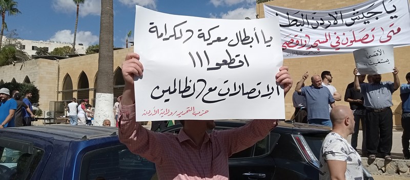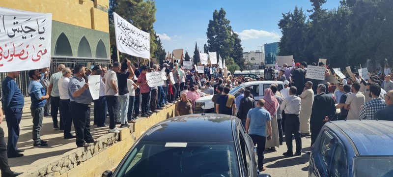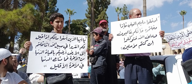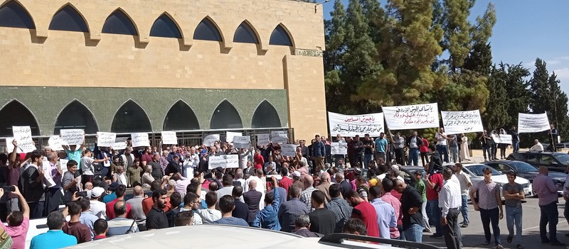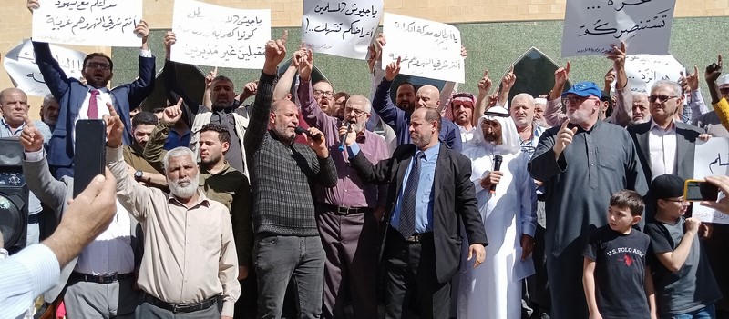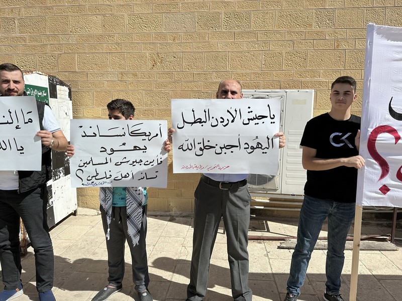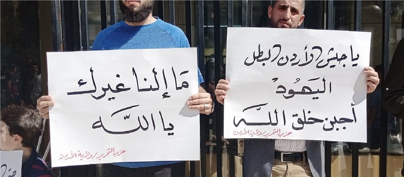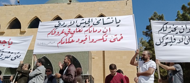 Polis, jandarma ve güvenlik güçlerinin kordonu eşliğinde Ürdün Üniversitesi Camisi avlusunda gerçekleşen protesto sırasında kalabalığın açtığı pankartlarda yazılı olan sloganlardan bazıları şunlardır: