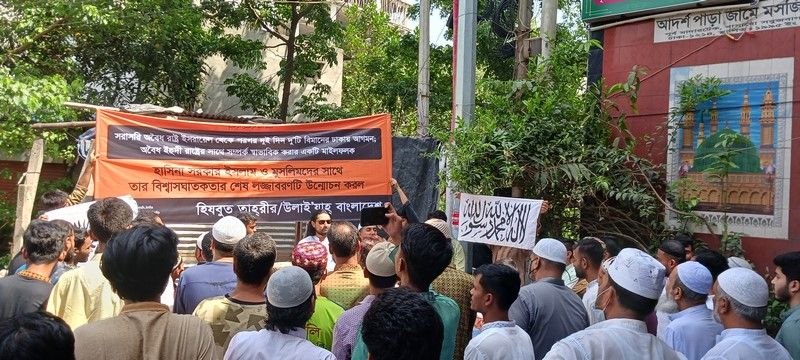 Hizb-ut Tahrir / Bangladeş, bugün (19/04/2024 Cuma) Dakka ve Chittagong’daki çeşitli camilerde “Tel Aviv Kalkışlı Dakka İnişli ABD Uçakları, Bu Yasadışı Yahudi Varlığı ile İlişkilerin Normalleştirilmesinde Bir Dönüm Noktasıdır, Böylelikle İslam’a ve Müslümanlara İhanetini Uzun Süredir Gizleyen Hasina Hükümetinin Maskesi Düşmüş Oldu” başlığı altında gösteri ve yürüyüş düzenledi.