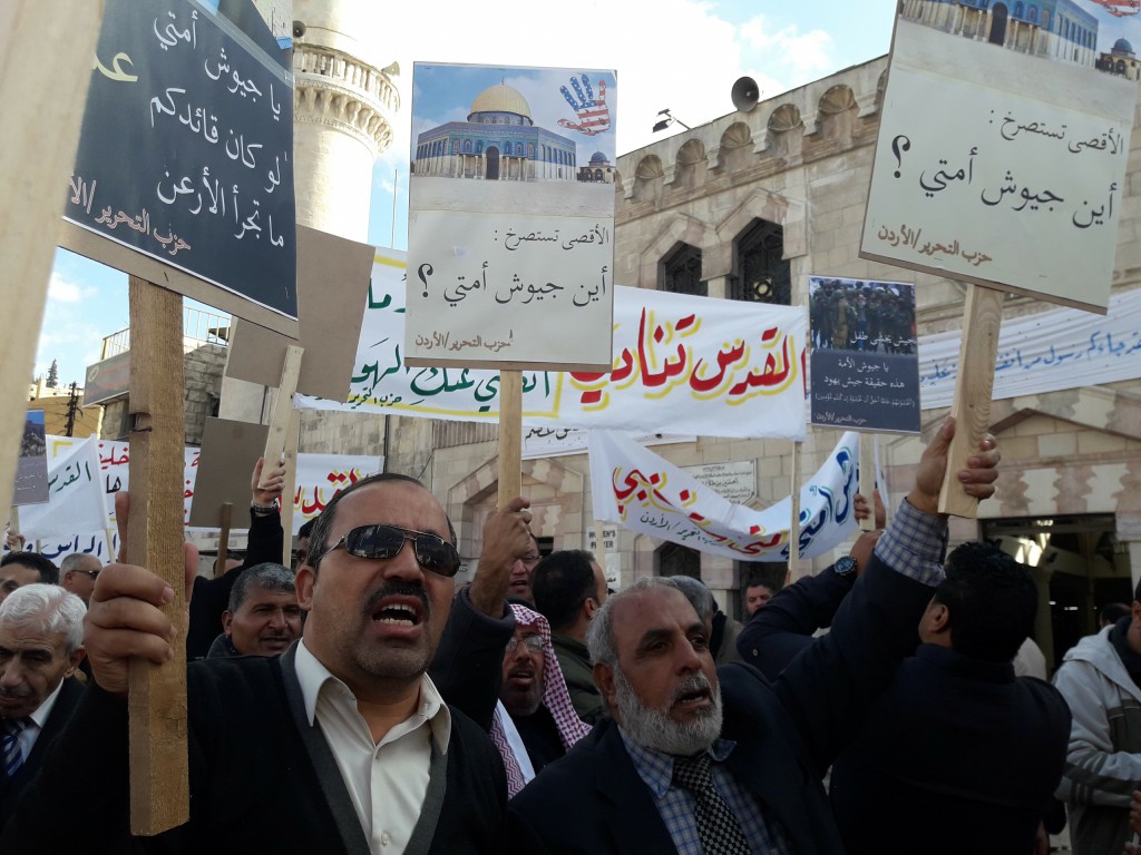 Hizb-ut Tahrir Ürdün Vilayeti, El-Aksa, El-Kuds (Kudüs) ve Filistin'i desteklemek için Amman'ın başkentinde bulunan Grand Hüseyni Camii meydanı önünde gösteri düzenledi ve Müslüman orduların, El-Aksa ve Kudüs'ün Doğusunu ve Batısını ve Filistin'in tümüne yönelik Şeriat (İslami) görevlerini yerine getirmeleri için seferber edilmesi talep edildi.