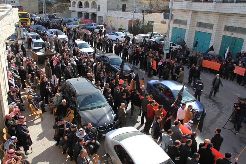 Hizb-ut Tahrir ve Halil kentinin ileri gelenleri pazar günü sabahtan öğlene kadar Halil kenti mahkemesi önünde İslami vakıf arazisinin Rus kilisesine verilmesini protesto eden bir gösteri düzenlemiştir.