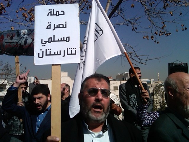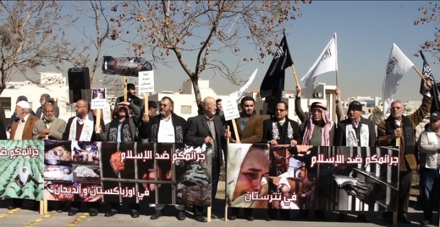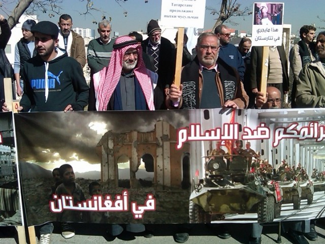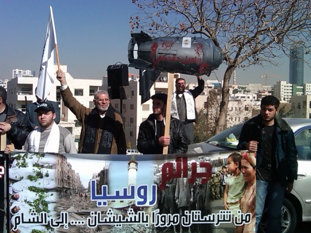 Ürdün Vilayeti: "Rusya'nın Çeçenistan ve Tataristan'dan Suriye'ye Kadar Uzanan Cürümleri" protesto gösterisi