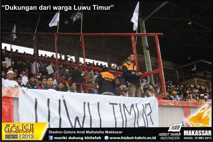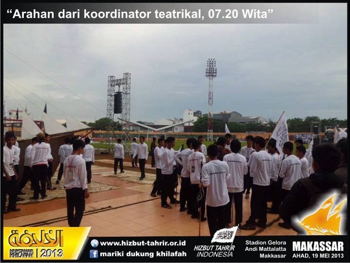 Hizb-ut Tahrir / Endonezya, İslam devletinin yıkılışının hicri yıldönümü münasebetiyle, Hilafet devletinin ikamesi ve İslami hayatın yeniden başlatılması için çalışmanın farz olduğunu hatırlatmak maksadıyla Endonezya'da otuzdan fazla şehirde başlattığı konferanslar zinciri çerçevesinde Endonezya'nın Makasar kentinde Hizb-ut Tahrir gençleri ve destekçilerinden binlerce kişinin katılımıyla konferans gerçekleştirmiştir.
