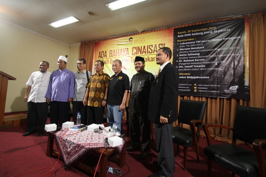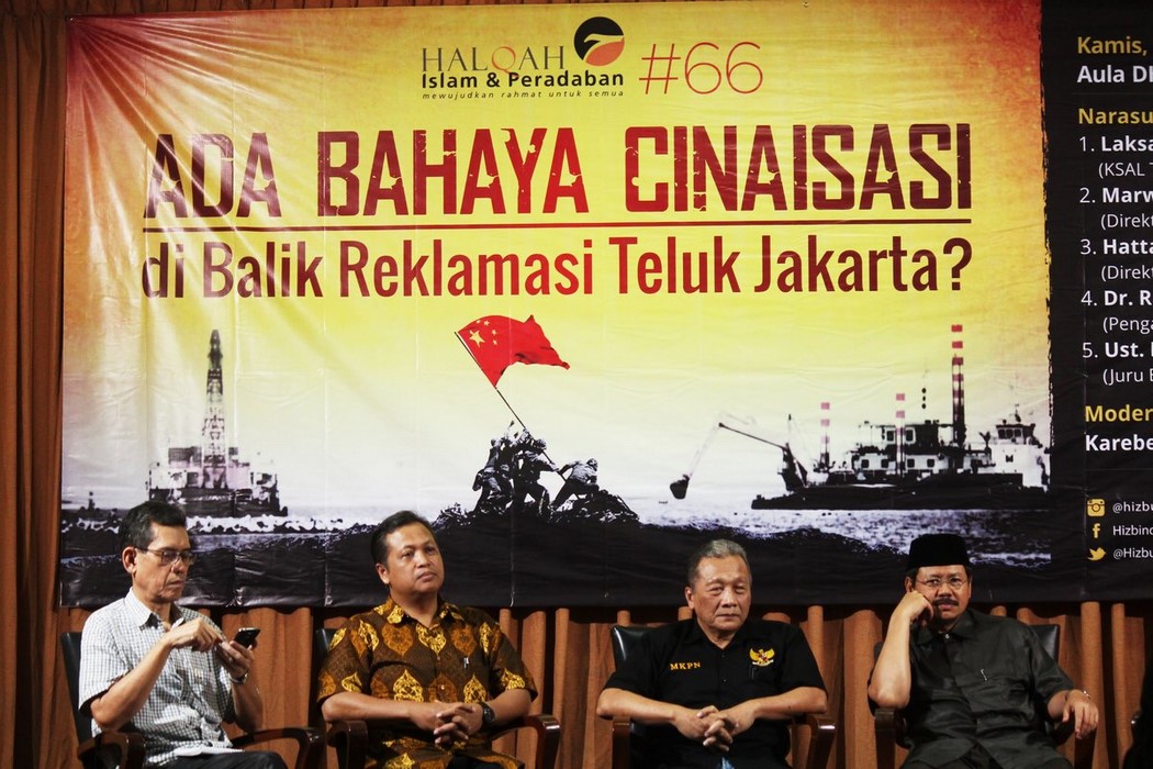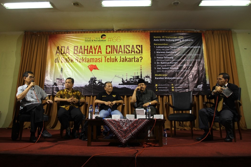 Amiral Salmet Subicato Çin’in Endonezya stratejisini anlattı. “Çin’in bütün güçleri Cakarta’ya hedeflendi çünkü Cakarta’yı almak bütün Endonezya’yı kontrol etmektir,” bu sözler 29 Eylül 2016 Perşembe günü “Toprakların tasfiye projesinin arkasında Çin tehlikesi” adı altında düzenlenen etkinlikte konuşan 2005-2007 yılı eski Donanma Komutanına aittir. Muhammed İsmail Yusanto İslam’ın toprağı tasfiye etme siyasetini aydınlattı. “Kamu’ya ait sahil ve denizler halk’ın yararı için kullanılmalıdır, şahıslara ve şirketlere verilmemelidir.”