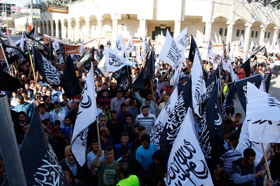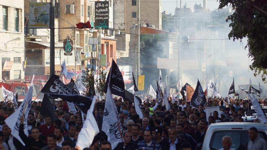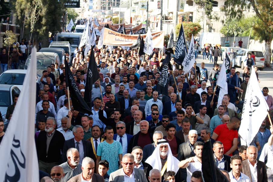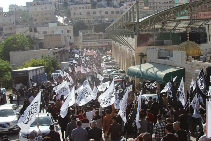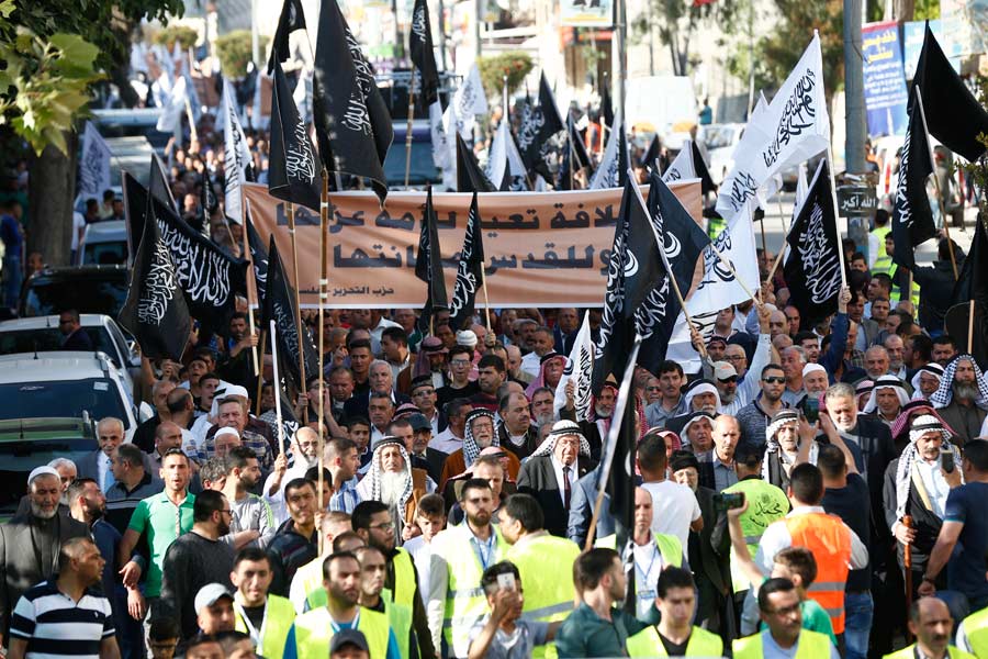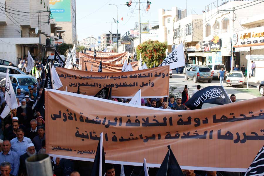 Halil Er-Rahman'da Hilafet'in yeniden ikame edilmesine çağrı ve sloganlar eşliğinde toplanan Müslümanların yürüyüşü