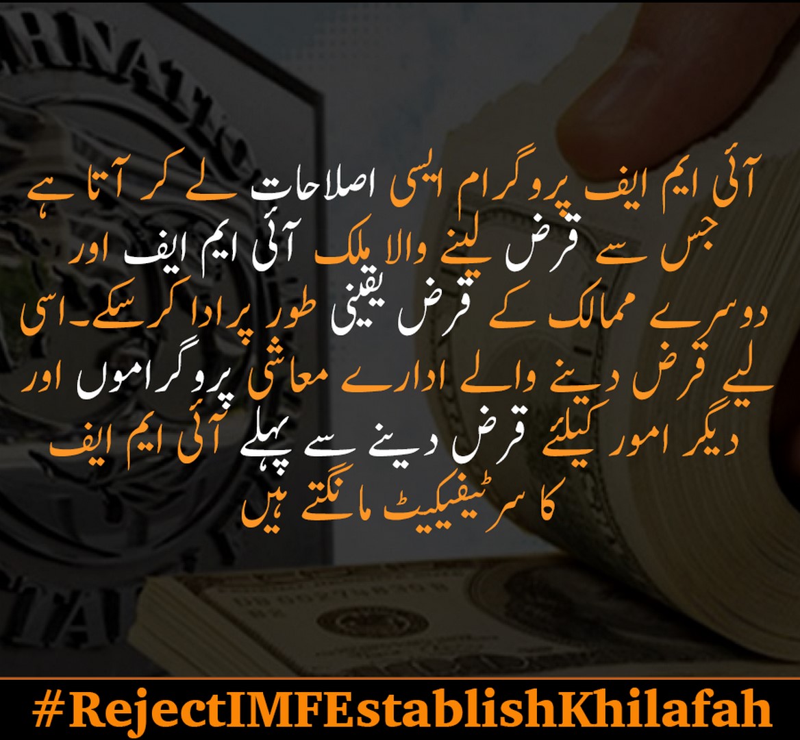 Hizb-ut Tahrir / Pakistan Vilayeti, Sosyal Medya üzerinden Müslümanları Uluslararası Para Fonunu reddetme ve Nübüvvet minhacı üzere -bi iznillah- kurulacak olan Raşidi Hilafetin ekonomi politikasını benimseme çağrısı yaptığı bir kampanya düzenliyor.