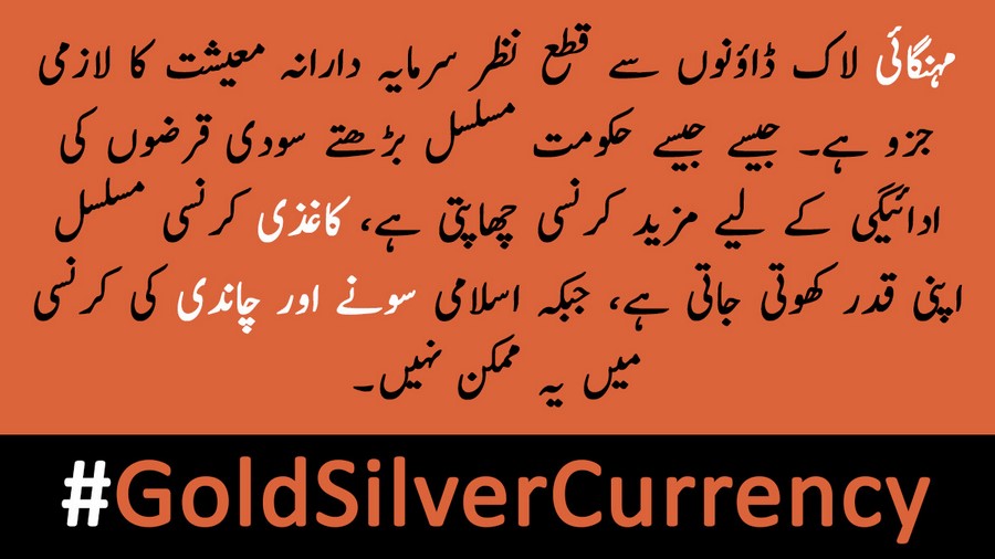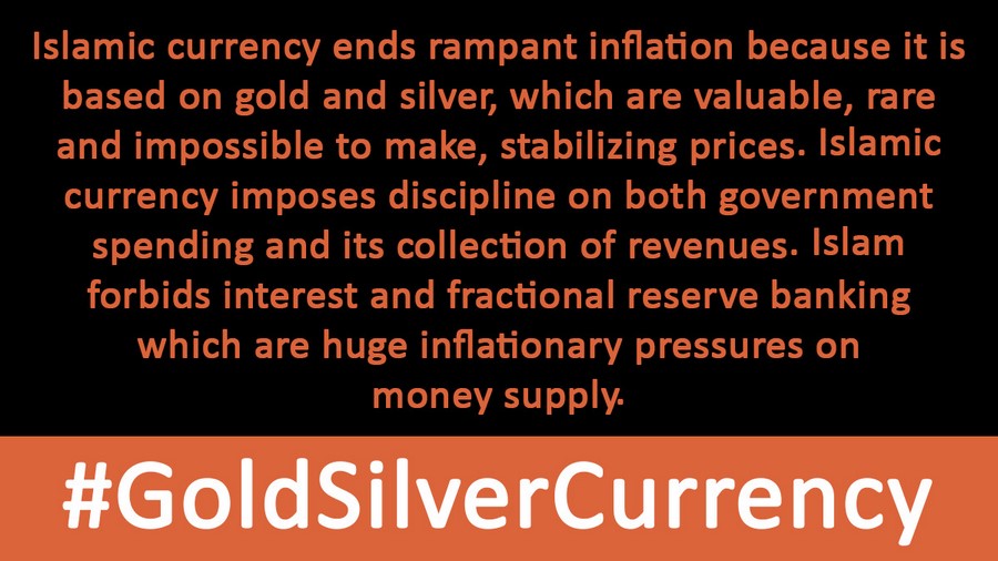 Hizb-ut Tahrir / Pakistan Vilayeti, İslami para birimin yaygın enflasyonu ortadan kaldıracağını vurgulamak için sosyal medyada “Hilafet Kampanyası: Altın ve Gümüş Destekli Bir Para Birimini Benimseyerek Yaygın Enflasyonu Ortadan Kaldıracak” başlıklı geniş kapsamlı kampanya yürütüyor. Çünkü İslami para birimi iki nadir bulunan değerli metale dayalı olduğu için fiyat istikrarına yol açacaktır. İslami para birimi hem hükümet harcamalarına hem de gelir toplamasına disiplin uygularken, İslam para arzı üzerinde büyük enflasyonist baskılar oluşturan tefeci banka faizini ve kısmi rezervleri yasaklar. İslam, devlete, gerçek servete güvenmek yerine yasal otorite tarafından desteklenen şu anki kâğıt para sistemi gibi istediği şekilde para çıkarmasına izin vermez.