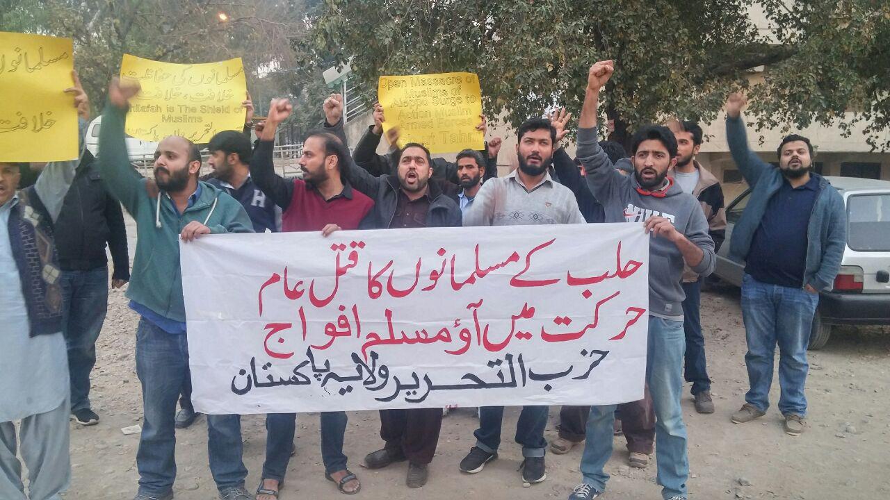 Hizb-ut Tahrir Pakistan Vilayeti, Halep'e destek konuşmalarının yapıldığı bir dizi gösteri düzenledi. Gösterilerde, Halep halkına destek ve zayıflara yardım etmek için hiçbir şey yapmayan tüm Dünyayı protesto eden sloganlar atıldı.