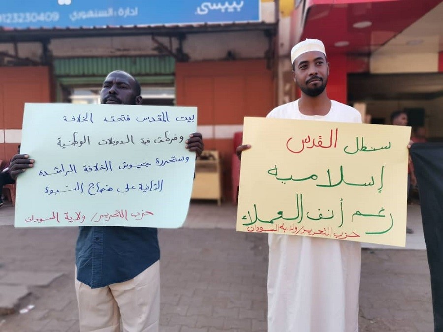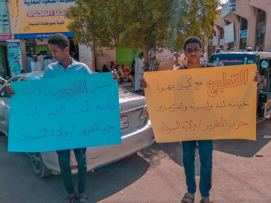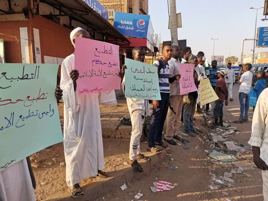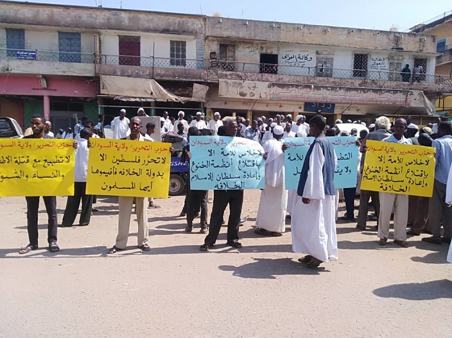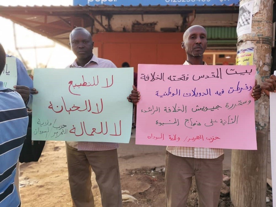 26 Ekim 2020 Pazartesi günü, Hizb-ut Tahrir Hartum gençleri, Bahri semti Pazar yerinde, Yahudi varlığı ile normalleşme cürmünü işleyen geçiş hükümetini kınamak için protesto düzenledi.