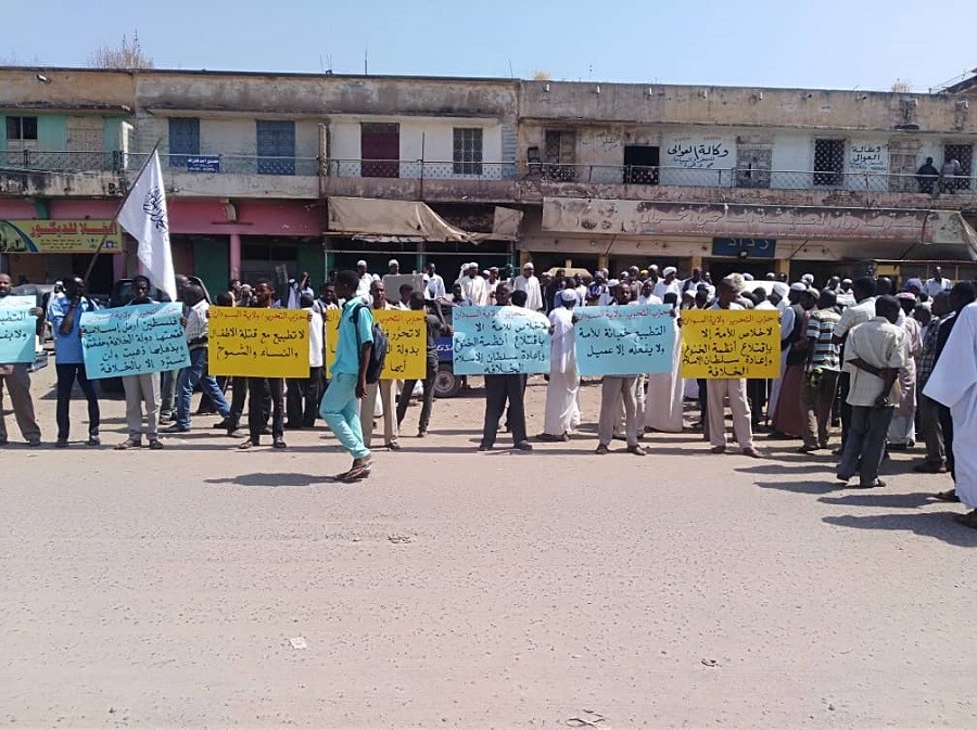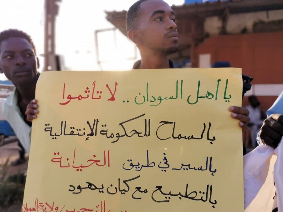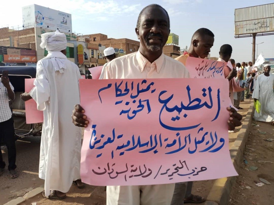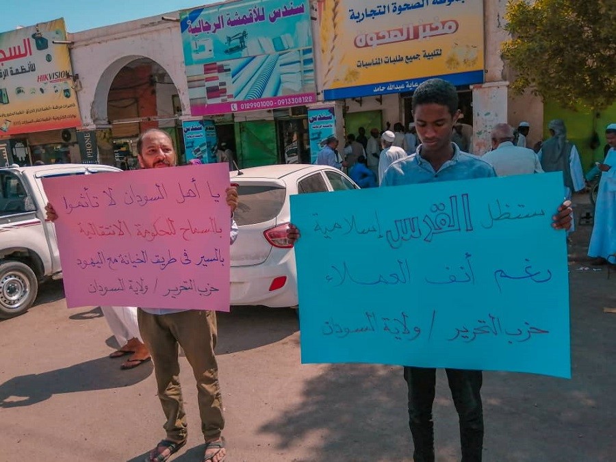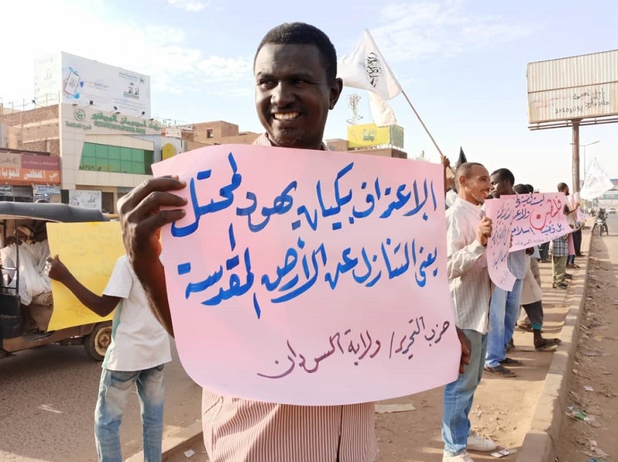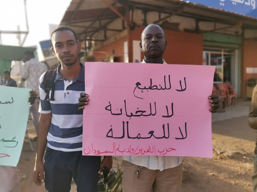 26 Ekim 2020 Pazartesi günü, Hizb-ut Tahrir Hartum gençleri, Bahri semti Pazar yerinde, Yahudi varlığı ile normalleşme cürmünü işleyen geçiş hükümetini kınamak için protesto düzenledi.