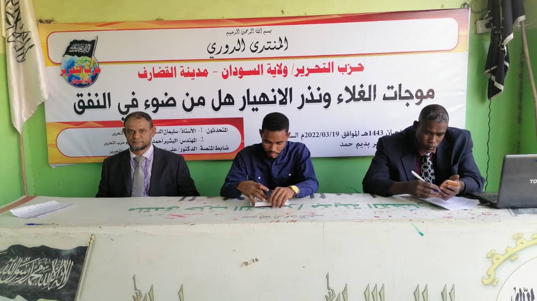 Gadarif şehrinde, Hizb-ut Tahrir / Sudan Vilayeti düzenli olarak yaptığı semineri “Yüksek fiyat dalgaları ve çöküşün alametleri.. Tünelin ucunda ışık var mı?” başlığı altında gerçekleştirdi. Seminerde üstat Süleyman Ed-Dasis yüksek fiyatları ve sebeplerini ele aldı. Diğer konuşmacı, Mühendis El-Beşir Ahmed, bu tür sorunların çözümlerinin ancak İslam’ın hükümlerini hayatın her safhasına uygulayacak olan Nübüvet Metodu Üzere Raşidi Hilafet Devletinde olduğunu açıkladı.