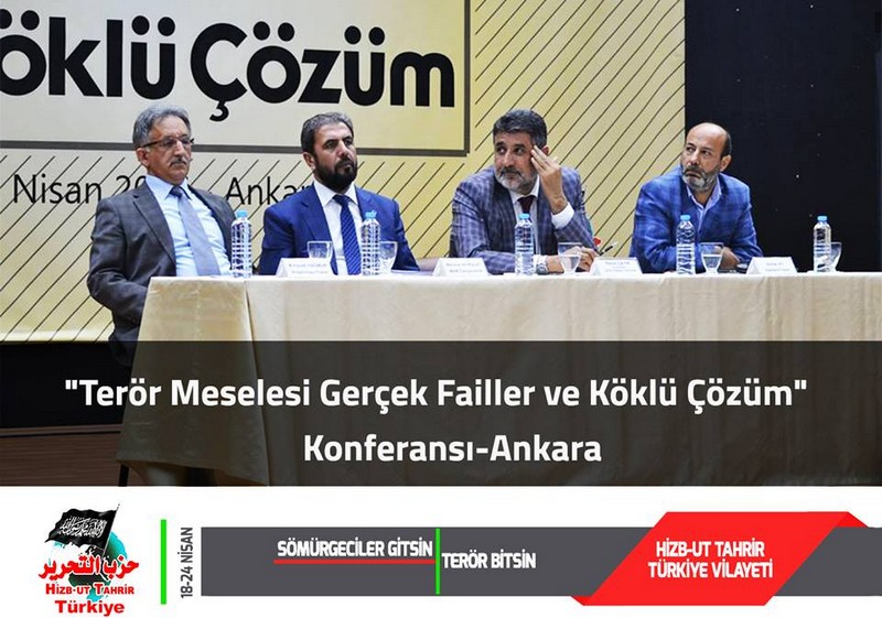 Hizb-ut Tahrir Türkiye Vilayeti Ankara'da "Terör Meselesi Gerçek Failler ve Köklü Çözüm" konulu konferans gerçekleştirdi. Köklü Değişim Dergisi Genel Koordinatörü Süleyman Uğurlu'nun sunumuyla başlayan konferansın ardından Terör olaylarında hayatını kaybeden Müslümanlar için İlahiyatçı Yazar Abdullah İmamoğlu Kuran Tilavetinde bulundu.