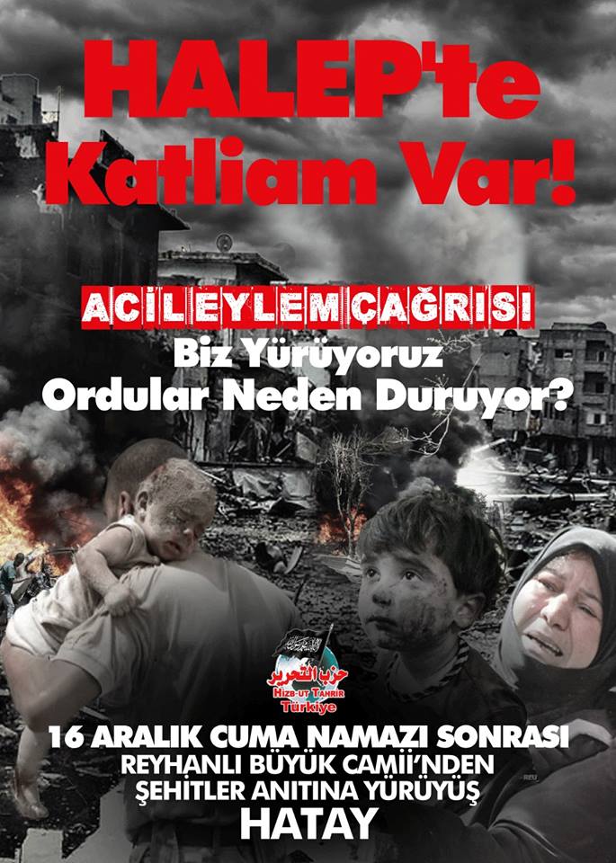 Hizb-ut Tahrir Türkiye Vilayeti İstanbul’da gerçekleşen terör eylemlerini lanetlemek ve özellikle dünyanın seyirci kaldığı Halep katliamını duyurmak için acil eylem çağrısı yapıyor.