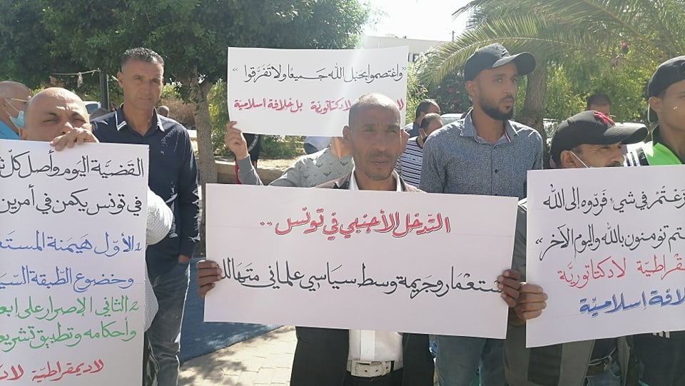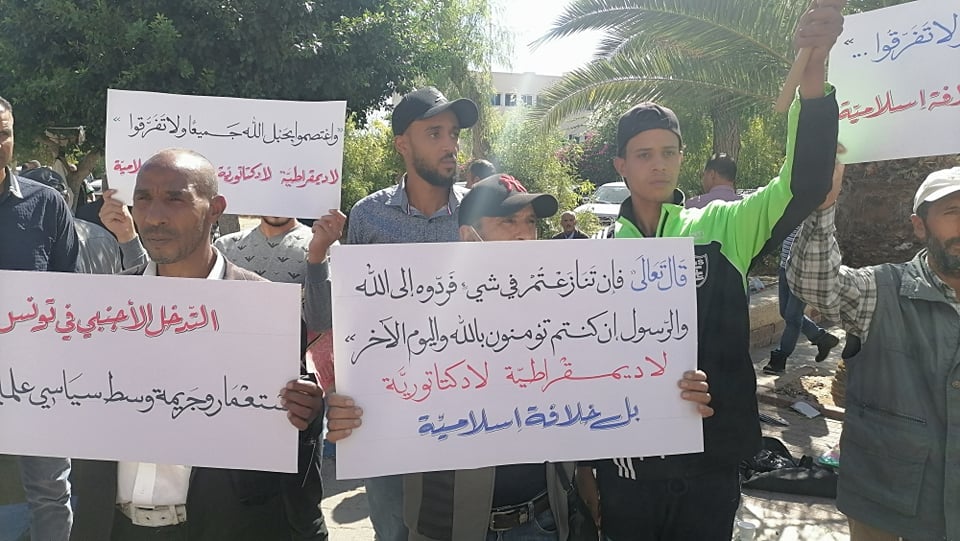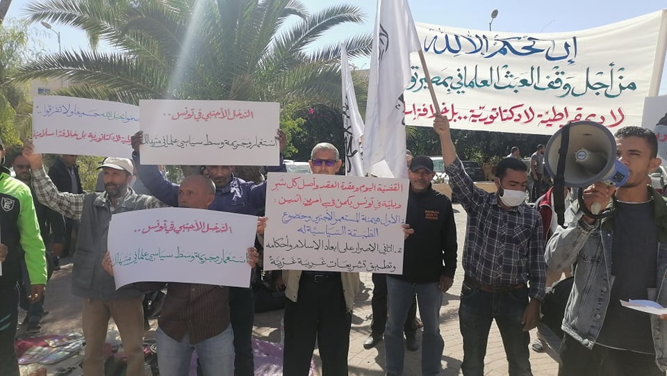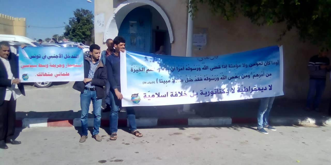 15 Ekim 2021 Cuma günü, Hizb-ut Tahrir / Tunus Vilayeti laiklik saçmalığını ve ülkeyi çıkmaza sokan siyasi yol ile yüzleşmek için Cuma Namazlarından sonra Tunus, Kayrevan ve Safakes şehirlerinde protesto düzenledi. Protestolarda “Ne Demokrasi, Ne Diktatörlük, Ancak İslami Hilafet” gibi sloganlar atıldı. Sonrasında konuşmalar yapıldı. Konuşmalarda ülkeyi hem demokratik sistemden hem diktatör cumhuriyet sisteminden oluşan batı egemenliğinden kurtarmaya, Nübüvvet Metodu Üzere İkinci Raşidi Hilafet devletini kurmak için sadece İslam’ı yönetim ve yasamanın tek temeli olarak kabul etmeye çağrıda bulunuldu.