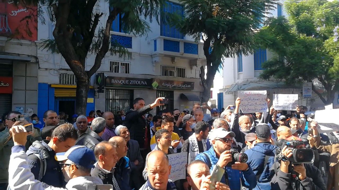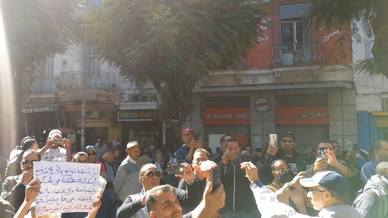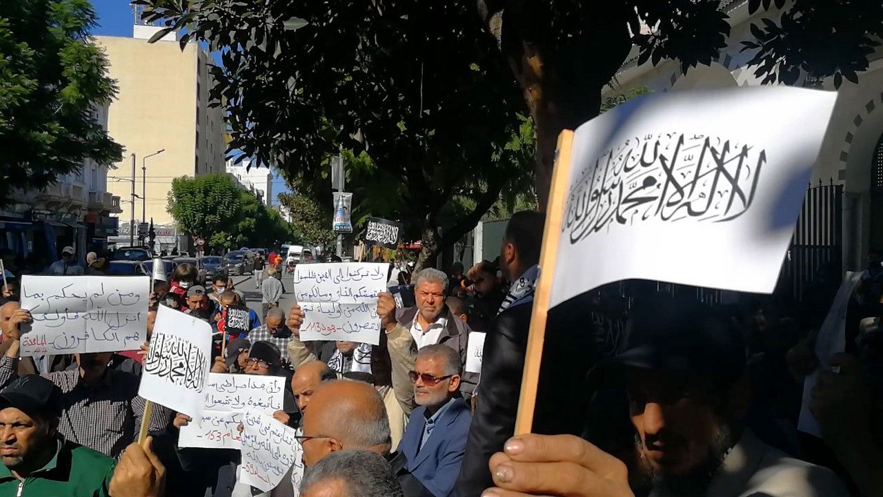 Halkın, çeşitli yerlerde gerçekleştirilen protestolara ulaşmasını engellemek için güvenlik güçleri protestocuların etrafını çembere aldı. Buna rağmen Hizb-ut Tahrir / Tunus Vilayeti Medya Bürosu Başkanı Dr. El-Esad Ajili konuşmasını gerçekleştirdi.