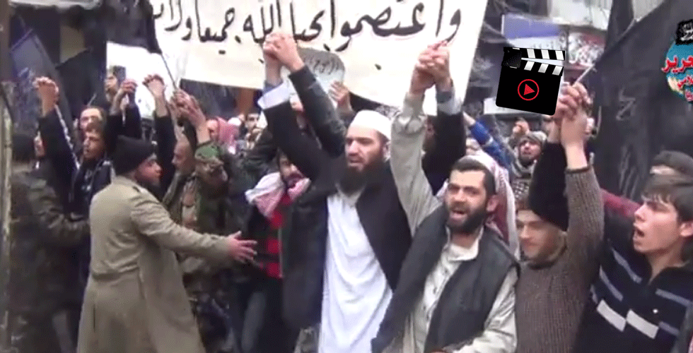 İslami devletin ikamesi için tüm müslümanlara çağrıda bulunulan gösteride sık sık "Kur'anın hükmünü istiyoruz" "Suriye halkı Raşidi Hilafet istiyor" ve "Ey Yahudi varlığı Hayberi hatırla, İslam Ordularının gelişi yakındır." sloganları atıldı.