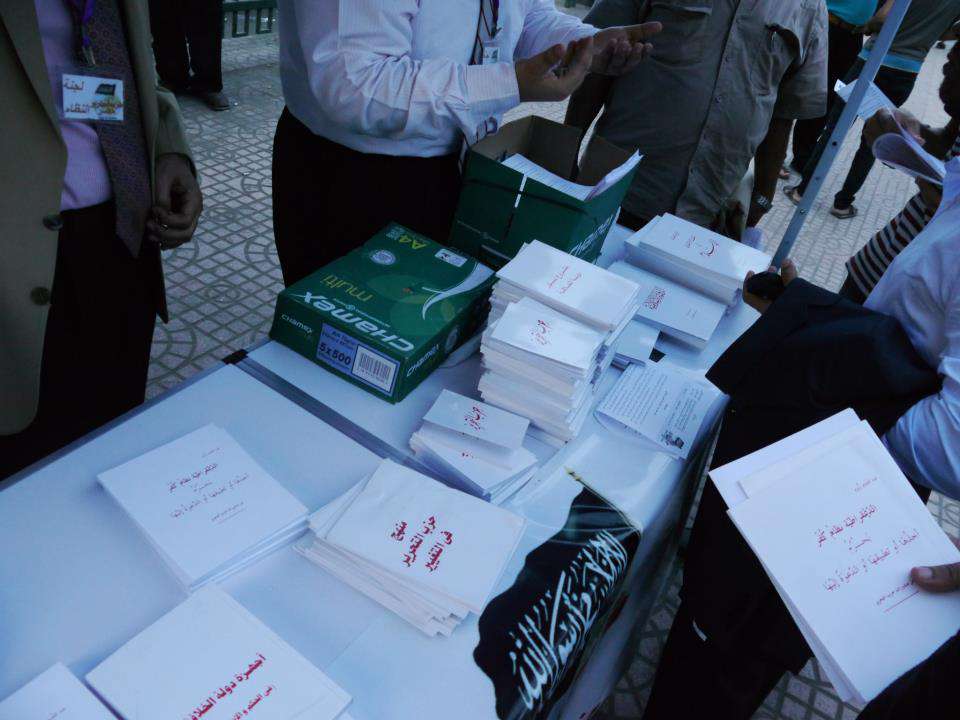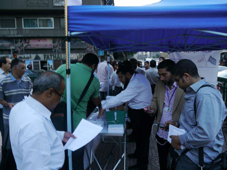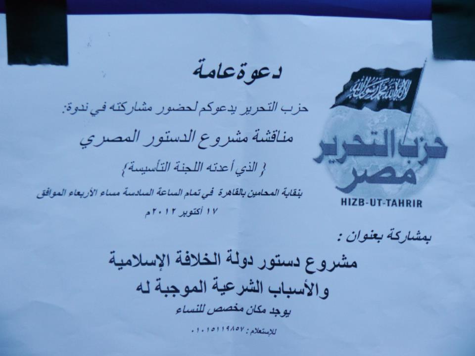 Hizb-ut Tahrir / Mısır‘ın haftalar öncesi Hilafet devleti anayasasını tanıtma kapsamında başlattığı kampanyanın devamı olarak 1 Zilhicce 1433 Hicri, 17 Ekim 2012 Miladi çarşamba günü "Mısır anayasası İslami anayasa olmak zorunda" başlığı altında Mısır'lı avukatlar barosu önünde seyyar bilgilendirme çadırı kurdular. Bu kampanyayı avukatlar barosunda verecekleri seminerden önce gerçekleştirdiler. Seminerde ise Hilafet devleti anayasası hakkında açıklama ve bilgilendirmede bulunarak İslami anayasayı vacib kılan sebepleri izah ettiler ve ayrıca şu an yürürlükteki Mısır anayasası hakkında tenkid yaptılar.