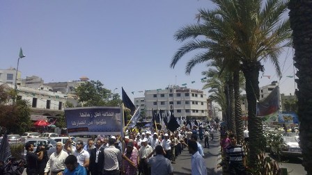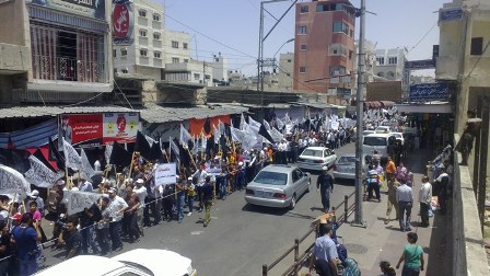 26 Receb 1434 H., elmuvafık 5 Haziran 2013 M.tarihinde Hizb-ut Tahrir / Filistin El Umeri Mescidinden başlayan Omarul Muhtar caddesinden ve Sahatul Filistin'den geçip Essaraya kavşağına kadar devam eden bir yürüyüş gerçekleştirmiş ve Belediyeye ait Parkta da bayanlar topluluğuyla buluşmuşlardır. Kalabalık ''Artık Hilafet zamanıdır Sizde Kurulmasına Nusret ediniz'' yazılı pankartlar taşımışlar ve ayrıca ''Ey Obama sana rağmen İslam geliyor'', ''Ümmet Hilafet istiyor'',ve ''Müslümanın kanı tektir'' gibi sloganlar atmışlardır.