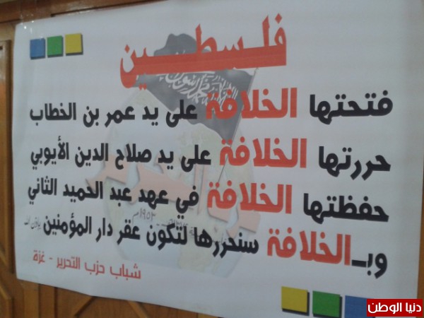 27 Mayıs 2014 Salı günü, Gazze Şeridi'ndeki Salahuddin sokağında, "Hilafet, Müslüman toprakları kurtaracak ve koruyacaktır" başlıklı bir konferans düzenledi. Konferans daha sonra Filistin'deki Hizb-ut Tahrir Medya Bürosu üyesi kardeş İbrahim Şerif'in Kur'an tilavetiyle başladı. Sonra tekbirlerle, "Filistin sizi çağrıyor, ey Mübarek toprak halkı... Sizin sessizliğiniz ihanettir; Sessizliğiniz suçtur; Sessizliğiniz kayba neden oluyor." sloganlarıyla inletti.