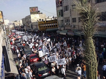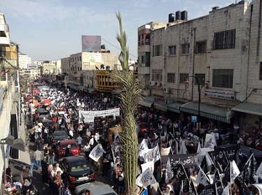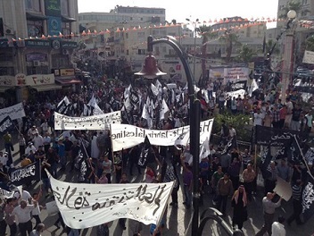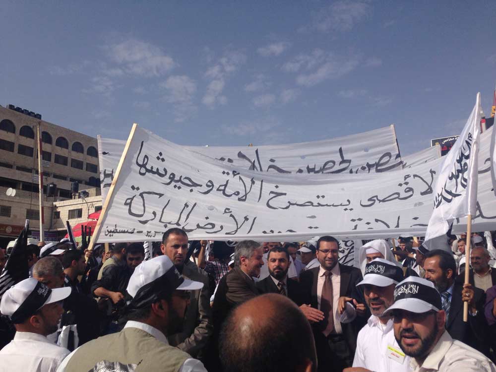 Ramallah şehrinde 31 Mayıs 2014 ikindi namazı sonrası "Mescid-il Aksa Ümmete ve ordularına Hilafeti ikame ederek bu mübarek beldeyi kurtarmalarını haykırıyor" sloganı altında yürüyüş düzenledi. Binlerce kişi Peygamber sav beyaz livasını yükseltti, pankartlarda cihad çağrısı ve Hilafet yoluyla Filistin, Mescid-il Aksa ve tutukluların kurtarılması mesajı verildi. Tekbir sesleri ve ordulara kutlu Filistin'deki tutukluları ve Mescid-il Aksa'yı kurtarın çağrısı içeren marşlar söylendi.