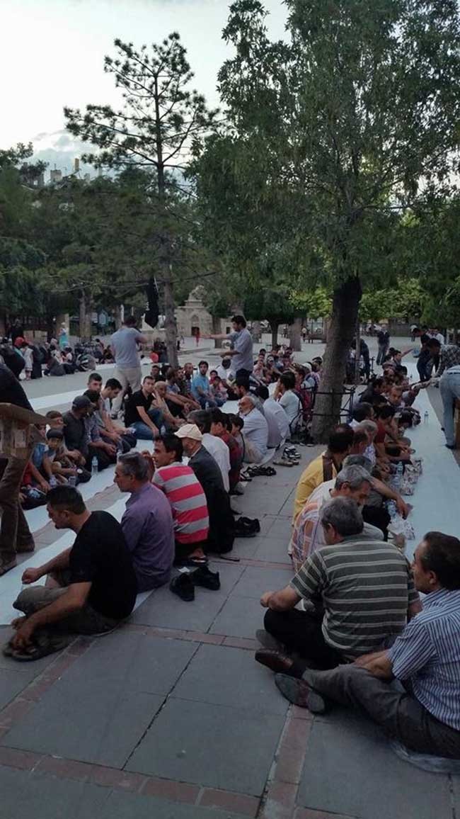 Basın açıklamasının ardından bir yandan iftar hazırlıkları yapılırken bir yandan da Mustafa Hoca etkili bir dua okudu. Ezan ile birlikte yüzlerce kişi bu atmosferde oruçlarını açtılar. Medyanın da ilgi gösterdiği program akşam namazı ile devam etti. Cemaatle kılınan namazın ardından sunumcu Ahmet Ceran maşlar eşliğinde katılımcılara tekbir ve slogan attırdı. Kadın-erkek, çoluk-çocuk yüzlerce kişinin katıldığı iftar ve basın açıklaması programı olaysız bir şekilde son bulurken kalabalık Kadir gecesi yapılacak olan kunut ameline katılma sözü vererek dağıldı.