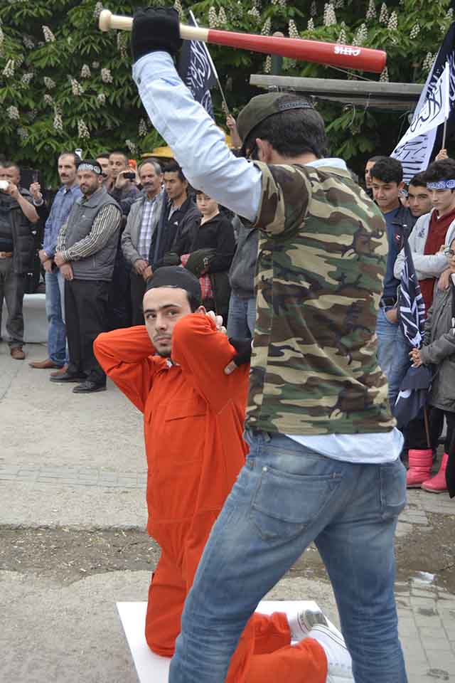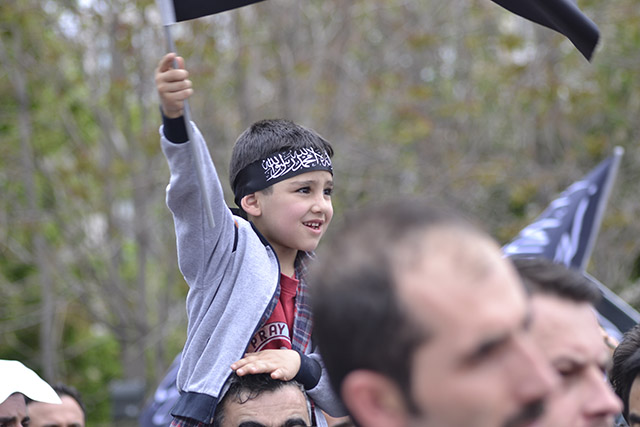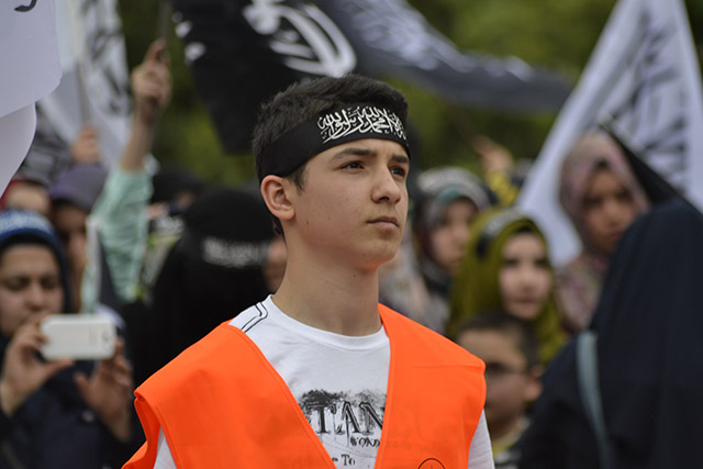 Ardından gençlerin hazırladığı, Müslümanların yaşadığı zulümleri ve ümmetin kurtuluşunun ancak Allah Rasulünün bayrağının altında, Hilafet gölgesinde son bulacağını tasvir eden bir falshmop gösterisi yapıldı. Tekbirlerle biten falshmop gösterisinden sonra Müslüman gençler adına Taha Gümüş bir konuşma yaptı. Gümüş, daha doğmadan zulümlerin başladığını ve halen bu zulümlerin devam ettiği belirterek şöyle dedi: