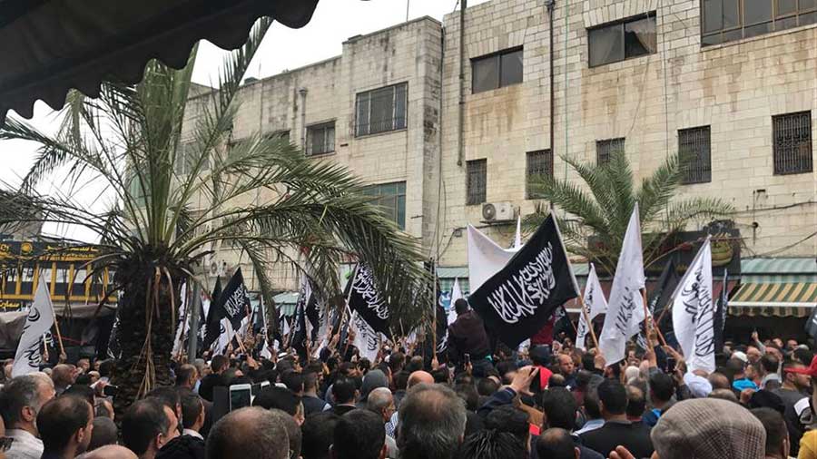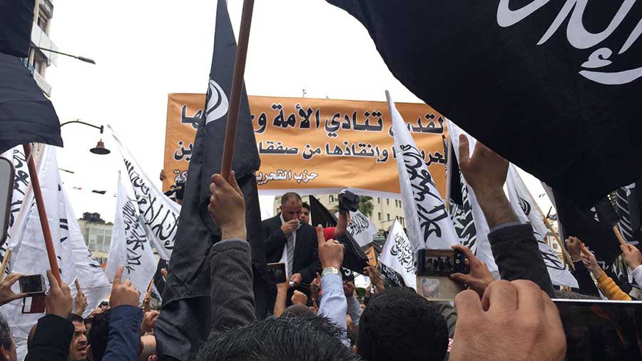 ہفتہ،12 مئی 2018 کو فلسطین کی مبارک سرزمین پر حزب التحریر نے ایک ریلی منعقد کی جس میں ہزاروں نے شرکت کی۔القدس کی حمائت میں راملہ شہر کےمرکز میں ایک بڑی ریلی کا اہتمام کیا گیا جسکا عنوان تھا ،"القدس ،اُمت اور اسکی افواج کو پکارتا ہے کہ وہ اسے سازشوں سے نجات اور آزادی دلواے"۔