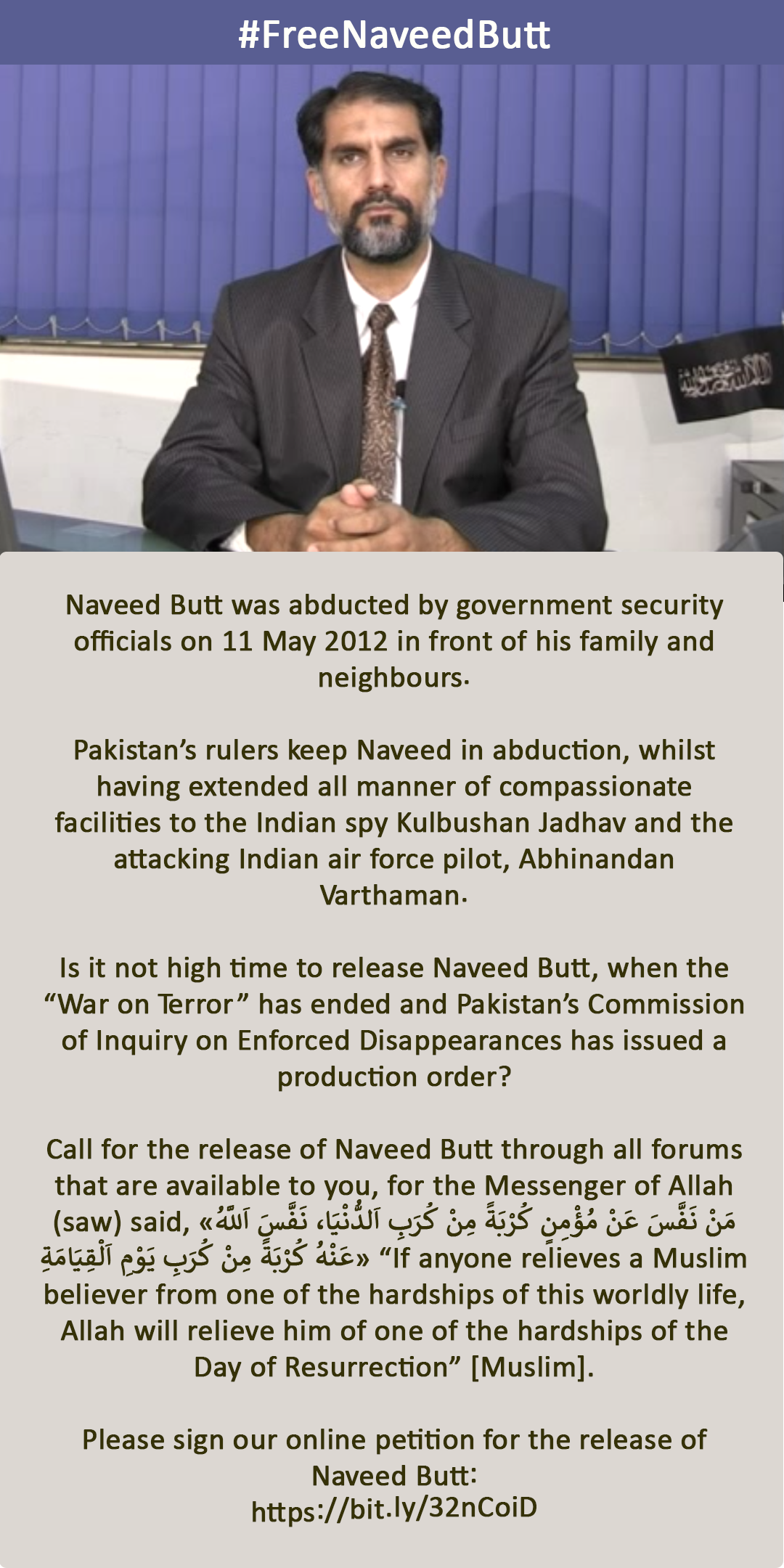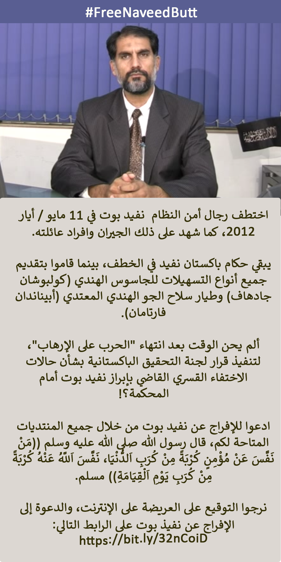 نوید بٹ کو جبری حراست سے رہا کردیں