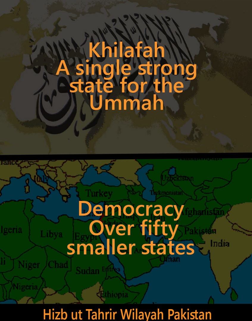 حزب التحریر ولایہ پاکستان نے عوامی مقامات پر پوسٹرز لگانے کی مہم کا آغاز کیا ہے جس میں کرپٹ جمہوری نظام کا خلافت کے اسلامی نظام سے تقابلی جائزہ پیش کیا گیا۔