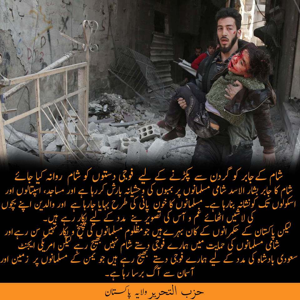 شام کے مختلف علاقوں میں، جو کہ باغیوں کے قبضے میں ہیں، حکومت اور اس کے اتحادیوں کی جانب سے سات سال سے خوفناک اور بدترین جنگ لڑی جارہی ہے، اس کے علاوہ پانچ سال سے مشرقی غوطہ کا غیر انسانی محاصرہ چل رہا ہے جو کہ اس وقت حزب اختلاف کا آخری اور سب سے مضبوط ترین علاقہ ہے، اور ہمیں اس حوالے سے صرف بین الاقوامی مطالبے اور کوششیں سننے اور دیکھنے کو ملتی ہیں کہ امدادی سامان کی ترسیل کے لیے جنگ بندی کی جائےجیسے کہ یہ سب کچھ بے رحم بین الاقوامی قوت کی سرپرستی میں نہیں ہورہا ہے۔ اور یہ کہ جو کچھ ہورہا ہے  وہ اس بات کا تقاضا کرتا ہے کہ خوراک اور کمبل بھیجیں جائیں اور وہ بھی کس کی جانب سے؟! قاتل کی جانب سے یا وہ جنہوں نے شام کے معصوم لوگوں کا خون بہایا یا اس کے بہانے میں مدد فراہم کی!!